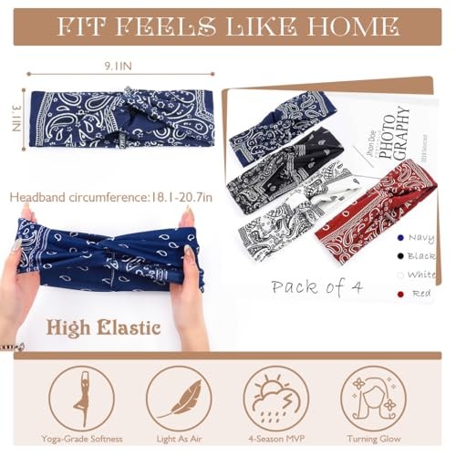 Return Policy Fast Delivery Trusted seller Boho Women Headband Stretchy Bandanas Headband Turban Paisley Print Hair Band Sport Knotted Hair Wrap for Women and Girls(Pack of 4) (A) Product Description Women bandana headband are made of sof Polyester, nice stretchy, not slip or tight,quite comfortable to wear. Boho headband for women size:circumference 16.5in/42cm,length 8.3in/21cm,width 2.9in/7.5cm,as pic shows.Free size for most women and girls,fit to most head types. Paisley bandanas for women are easy to match, when you want to keep your hair from being messy, can dress them all different ways with this turban,a worth having a headbands. Elastic headband is soft, fit for various occasion like daily wear,make up, going out, beach, teams, party, dancer, prom. It also is fashionable sports headband for yoga,workout,running. Package & Customers Service:You will get 4 pack of this twisted bandana headbands,if you are not satisfied with our headbands,contact us any time, we will get you back within 24 hours and try our best to make things right. Shipping Returns Payment Shipping Shipping is FREE to all addresses other than APO/PO boxes in the lower 48 states. All our stock ships from US-based warehouses. Shipped via USPS or UPS (depending on location and package weight) Unless stated otherwise, all orders will ship within 24-72 hours of your payment being processed. Check our feedback to see the great reviews of FAST shipping we offer. Returns Seller does not accept returns Payment We currently accept payment via eBay managed payments only. Once payment is cleared, we will dispatch your shipment within 1-3 business days. Please refer to the "Shipping" tab for more information regarding shipping speed to your destination.