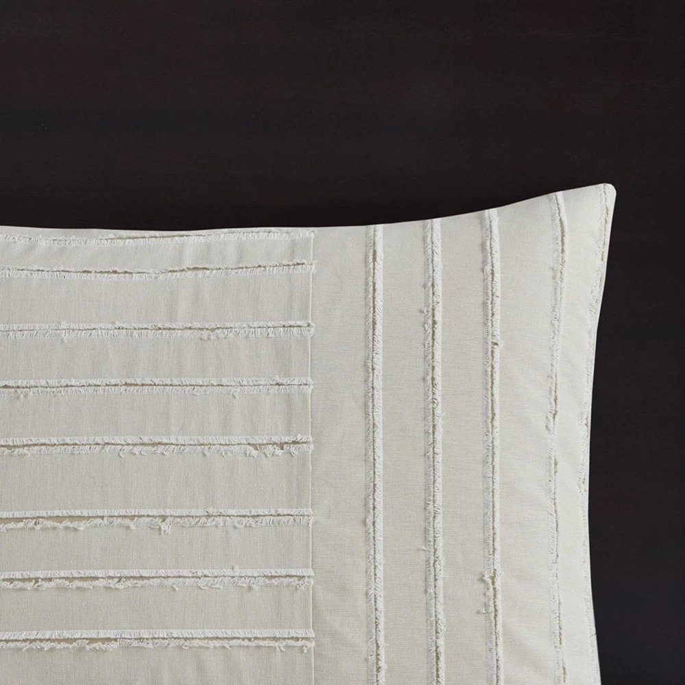 Boho Striped Queen Comforter Set with Clipped Jacquard and Button Details