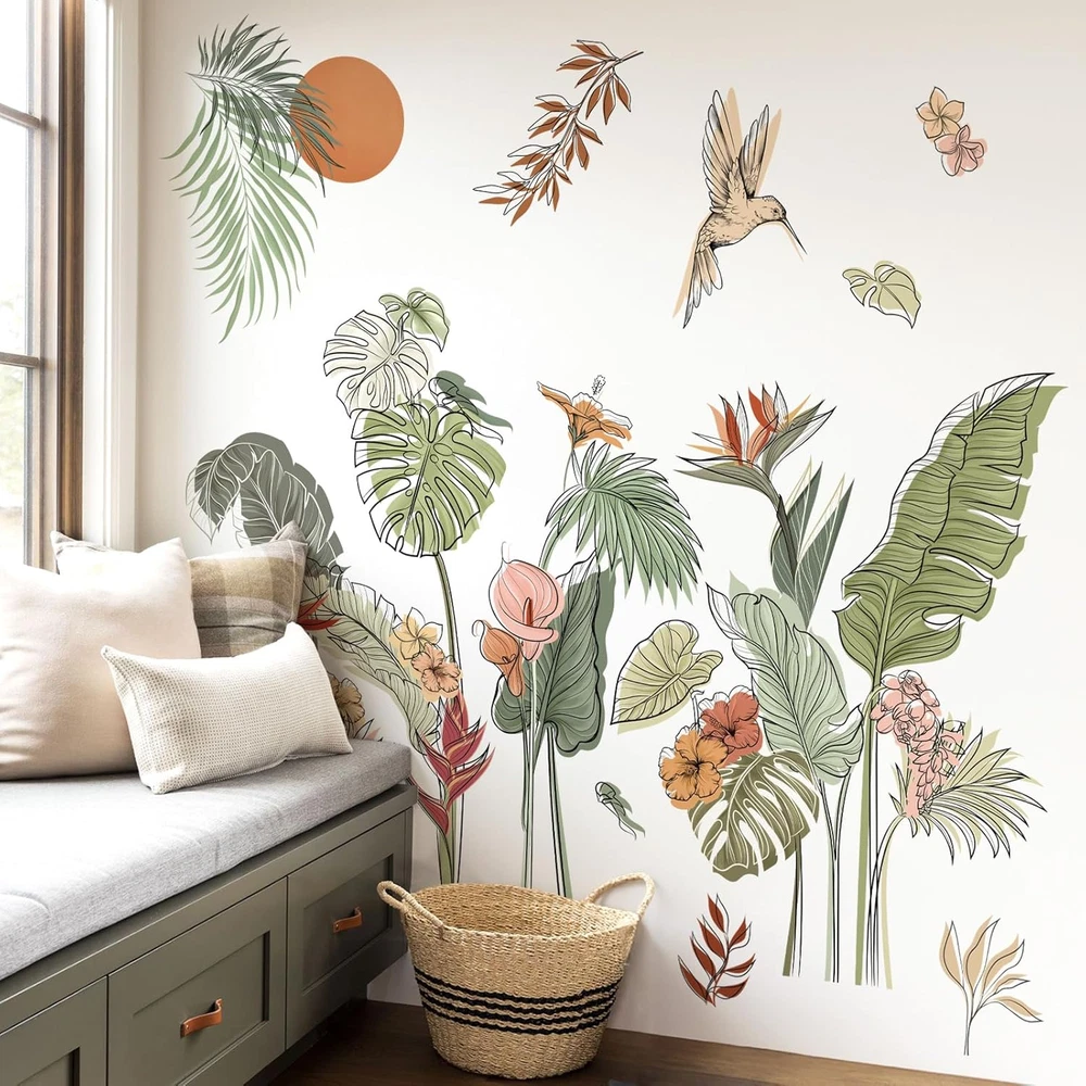 It can be stuck onto any clean, dry, non-textured smooth surfaces: walls, windows, tiles, furniture, mirrors, even your refrigerators. decalmile wall stickers are made of high quality, bright and colourful, easy to peel and stick, removable and waterproof. decalmile boho tropical leaves flower wall decals are perfect to decorate bedroom, living room, dining room, sofa tv background. Come in 2 sheets, sheet size: 30cm × 90cm (11.8" × 35.4"), recommend finished size: 88cm x 88cm (34.6" x 34.6") or depending on your preference to DIY. If you're not satisfied with your purchase or have any problems on installation, please feel free to contact us and we will reply and help solve problems within 24 hours. Product Description DECALMILE FLOWER WALL DECALS Add Chill Vibes Various Choices with Unique Design decalmile stock a huge selection of stunning wall stickers catering to all ages and tastes. We promise all stickers are non-toxic and top quality PVC material Wall Decals for Kids Become an interior decorator and transform your living space from ordinary to extraordinary with decalmile unique wall stickers. Flower Wall Decor Add to Cart Add to Cart Add to Cart Add to Cart Add to Cart Add to Cart Add to Cart Customer Reviews 4.5 out of 5 stars 213 4.5 out of 5 stars 257 4.4 out of 5 stars 78 4.4 out of 5 stars 78 4.5 out of 5 stars 40 4.3 out of 5 stars 739 4.5 out of 5 stars 155 Price $11.99 $ 11 . 99 $12.99 $ 12 . 99 $17.99 $ 17 . 99 $12.99 $ 12 . 99 $11.99 $ 11 . 99 $16.99 $ 16 . 99 $12.99 $ 12 . 99 Removable ✔ ✔ ✔ ✔ ✔ ✔ ✔ Material PVC PVC PVC PVC PVC PVC PVC Installation Type Peel & Stick Peel & Stick Peel & Stick Peel & Stick Peel & Stick Peel & Stick Peel & Stick Theme Leaves Flower Flower Flower Flower Leaves Sunflower Color Multi Multi Multi Multi Multi Multi Multi Pink Wall Decor Add to Cart Add to Cart Add to Cart Add to Cart Add to Cart Add to Cart Add to Cart Customer Reviews 3.7 out of 5 stars 48 4.4 out of 5 stars 102 4.5 out of 5 stars 40 4.7 out of 5 stars 138 4.4 out of 5 stars 78 4.6 out of 5 stars 510 4.4 out of 5 stars 387 Price $14.99 $ 14 . 99 $18.99 $ 18 . 99 $12.99 $ 12 . 99 $11.99 $ 11 . 99 $11.99 $ 11 . 99 $21.99 $ 21 . 99 $11.39 $ 11 . 39 Removable ✔ ✔ ✔ ✔ ✔ ✔ ✔ Material PVC PVC PVC PVC PVC PVC PVC Installation Type Peel & Stick Peel & Stick Peel & Stick Peel & Stick Peel & Stick Peel & Stick Peel & Stick Color Multi Multi Multi Multi Multi Multi Multi Theme Palm Tree Palm Tree Vine Flower Flower Blossom Tree Vine What types of surfaces can the wall decals be applied to? Our wall stickers can be applied to just about any clean and smooth surface that is free of dust, grease, or other contaminants. DecalMile wall stickers may not adhere to heavily-textured surfaces but can adhere to lightly textured wall. How long will my wall sticker stay up? DecalMIile wall stickers are not intended for permanent application. However, they can last for months or years depending on the surface and environment. Will the wall decals damage my wall? When walls have been prepared as recommended and proper application, most people have no wall damage issue while removing. Please be aware that there is potential for wall damage. Freshly painted walls should be allowed to cure for at least 4 weeks. I installed a wall decal but it is starting to peel off. What do I do? If part of a wall sticker starts to come off a surface, you can use washable glue, such as a glue stick or wallpaper paste or glue, to reattach it.