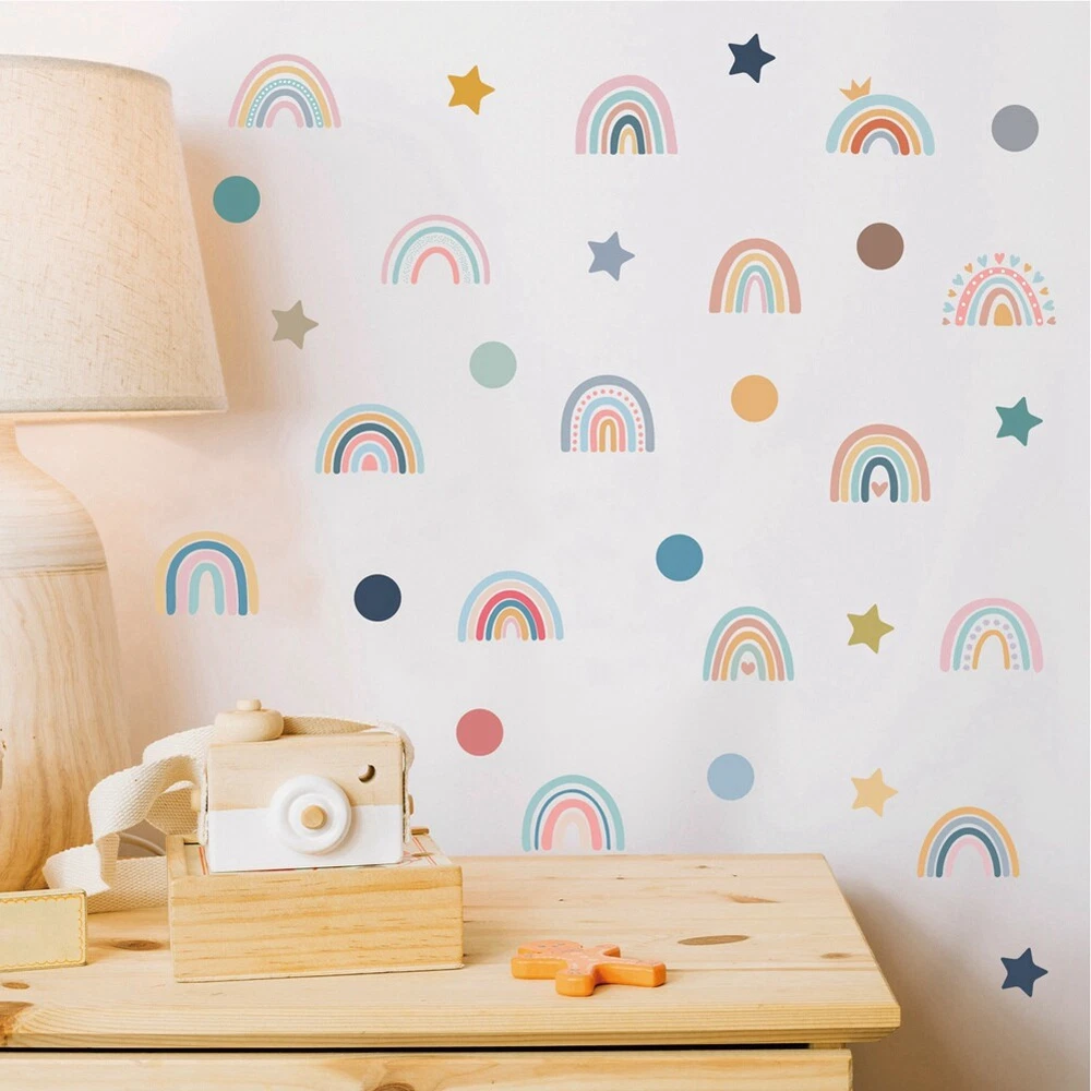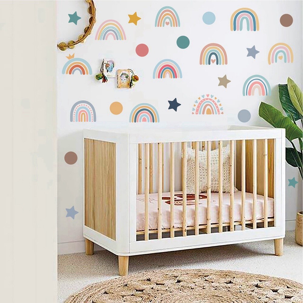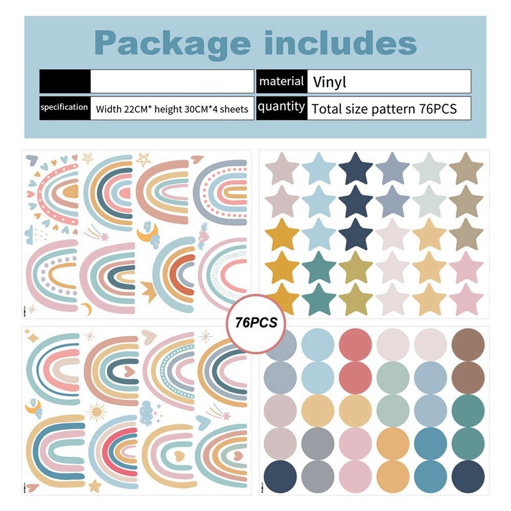 Boho Wall Decals Baby Nursery Bedroom Wall Decor X1F14439 It can be stuck onto any clean, dry, non-textured smooth surfaces: walls, , tiles, furniture, mirrors, even your refrigerators. wall stickers are made of high quality, bright and colourful, easy to peel and stick, removable and waterproof. rainbow wall stickers are perfect to decorate kids room, bedroom, living room, baby nursery and playroom. Including 8 sheets, sheet size: 22cm x 30cm, A total of 152pcs of wall stickers, and depending on your preference to DIY. Material: vinyl colour: multicoloured Package Contents: 8 x sheets wall decals(A total of 152pcs of wall stickers)