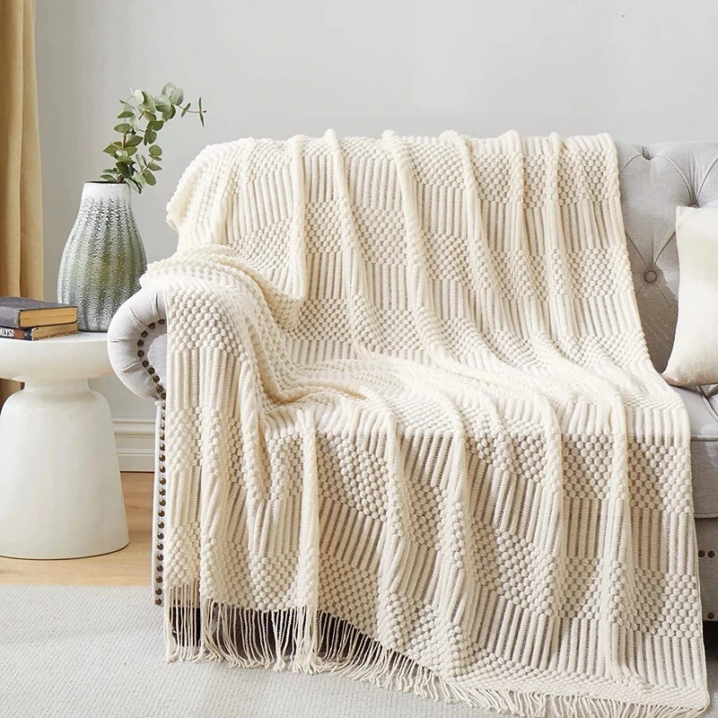 About this item Unbelievably soft, cozy with classic knit and fringes, multiple colors to choose from, you’ll find a perfect choice to match your couch, sofa, and bed without fading colors even for years to come 100%Acrylic Soft Blanket Lightweight throw blanket can be easily packed in the bag for travelling with friends in all seasons. Soft, cozy throw is the perfect way to add cozy comfort on cool nights. 100% acrylic blankets are perfect for folks who are sensitive to the scaling of wool fibers. Luxuriously soft and warm, this throw piece will nicely accentuate your home with its uniquely modern texture and style. INyahome Blanket Cozy up to home linens everyone in your family will love. We’re always dreaming up new ways to help you sleep well and get that extra bit of comfort throughout the day, all made for the way you live, priced for your budget, and delivered directly to you with a smile. EASY TO CLEAN Separate washing, gentle cycle, and low iron are commonly used methods, which work just fine for our woven blanket. Our soft throw blankets could wash up well. your knit blanket is vacuum packed, the blanket will become fluffy and soft after the first wash.