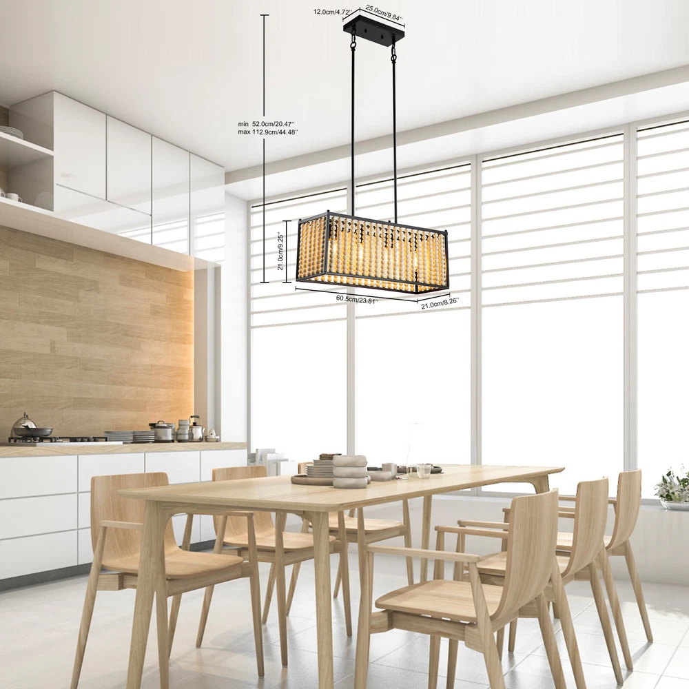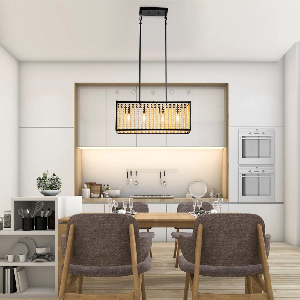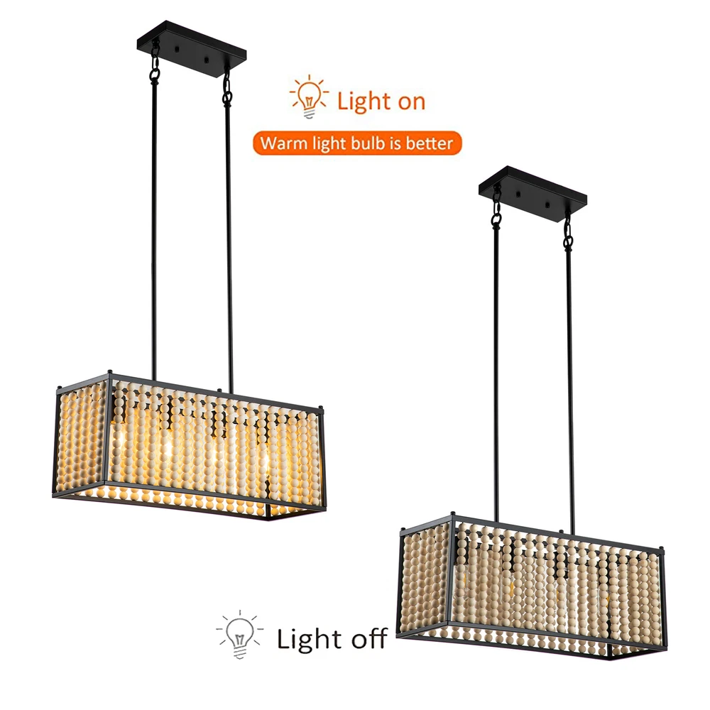 Boho Wood Bead Chandelier Pendant Lamp Farmhouse Hanging Ceiling Light Fixture Boho Wood Bead Chandelier Pendant Lamp Farmhouse Hanging Ceiling Light Fixture About this item Boho Style: This boho chandelier is comprised of numerous wooden beads that are suspended in an overlapping, ribbon-like design, giving this chandelier its Bohemian Style appearance. Natural Wood Beads: These beads are not cheap plastic beads, they are handmade from high-quality solid wood and have a smooth surface. Bohemia Stylish Design: Farmhouse Boho Light Fixture decorated classic Bohemia style elements made up of natural solid wood bead and high-quality painting Black Metal body Structure. , creating an eye-catching look that lends bohemian flair to any area Premium Material and Durable : the lamp body use quality metal body painted carefully, won't rust or peel paint.high-grade, eco-friendly solid wood beads, which polished with exquisite craftsmanship, easy for clean and won’t got moldy, making our boho beaded ceiling light super easy to clean. 【Adjustable Height】 This light features adjustable With a removable Combined lower rod. , you can adjust the height as you want to suit the house decor. The size:Max height of the Lower lever 35.23in(2x7.16in+4x11.96in). [Size & Height] Size as dining room chandelier:23.81"(D)x9.25"(H)x height of the Lower lever is 35.23''.Chandelier canopy: 4.7"(D) x 0.98"(H). Ceiling canopy: 9.84"(D) x 4.72"(W). [Bulb holder]: E26. Note: bulbs are not included. The lamp works fine when used with incandescent or LED bulbs with standardE26 bases.Maximum 40W,Please note: incandescent bulbs are not included [Compatible With Flat & Sloped Ceiling] You can install this rectangle pendant lighting on a flat or sloped ceiling to suit your decor in any places,It is suitable for industrial retro decoration such as living room, dining room, kitchen, bar, restaurant, hotel, barn, farmhouse, etc. Specifications - Material: Metal+Wooden bead - Number of Lights: 4 - Bulb base: E26 - Max.Power: 40W - Voltage: 110-120V - Type of Bulb: LED / CFL / Incandescent / Dimmable Bulb (bulb not included) What you get: 1 x Unassembed Pendant Light (Bulbs Not Included) 1 xScrews sets 1 xInstruction Manual Tips: -Please make sure the light is securely supported and is disconnected from power when installing. -Installing the light bulbs before hanging the makes the installation easier. ✔[Easy to install] Open the package and check the appearance of the chandelier. Follow the instructions to group the lights together and test their effects before installing them on the ceiling. In the process of assembling the lamp, please pay attention to check the position of each wire interface and tighten the fixing screws. Payment Delivery details Terms of sales About us Contact us Payment We accept ebay payment 。 Fees such as import duties, taxes are not included in the item price or shipping costs. These charges are the buyer's responsibility. Delivery details Shipping: 2-9 working days to: USA Terms of sales We maintain high standards of excellence and strive for hundred percent customer satisfaction. Feedback is very important to us. We hope that you contact us immediately before you give neutral or negative feedback, so that we can address your concerns. It is impossible to address issues if we do not know about them! About us Your satis faction is our ultimate goal. We work hard to earn your trust and future business. Our certified technicians have tested each item before shipping. The unit comes with 1 year limited warranty on all manufacturing defects. a) If you receive a defective item, you may return it or ask for a discount. Please contact us within 14 days after you receive the package. b) What you returned must be intact and in its original packaging as re? u. Customer is responsible for shipping costs of the returned item. c) We will cover the cost of shipping back t with the shipping rate indicated in the registration page. We will send you a new unit or refund the full payment you paid. Thank you. Contact us Business Hour Business Hour: Monday To Friday: 8:30 AM to 5:00 PM (Beijing China time) Due to time zones, our reply to your questions may not be immediately. But within above working time, we will reply your email within 24 hours. If it's non-workdays, please kindly be patient and wait till Monday. Please contact us with ebay message. Please feel free to contact us if you have any questions. Monday To Friday: 8:30 AM to 5:00 PM (Beijing China time) Due to time zones, our reply to your questions may not be immediately. But within above working time, we will reply your email within 24 hours. If it's non-workdays, please kindly be patient and wait till Monday. Please contact us with ebay message. Please feel free to contact us if you have any questions.