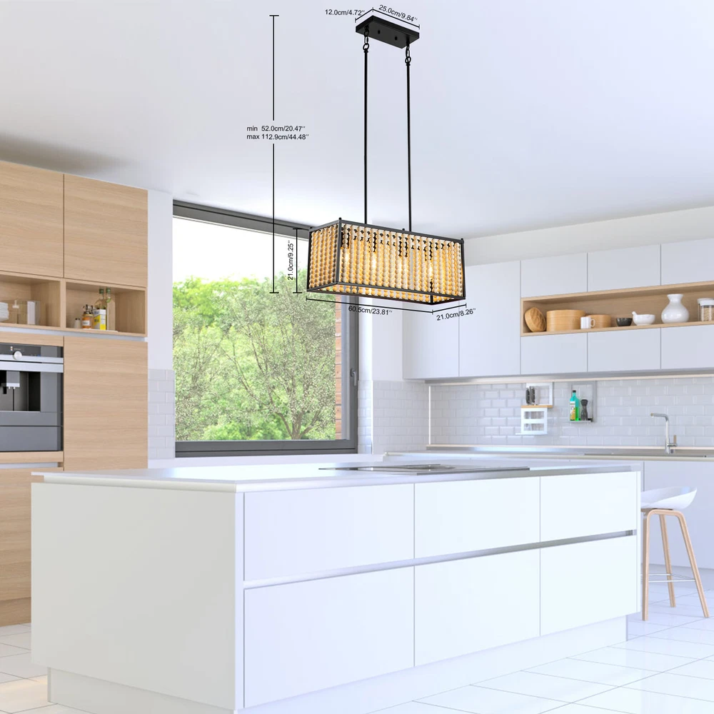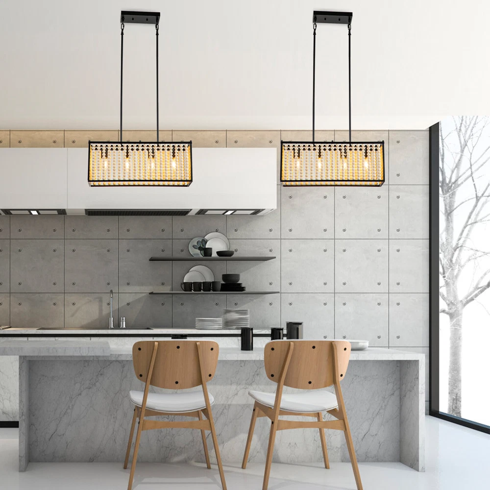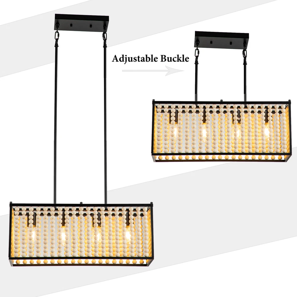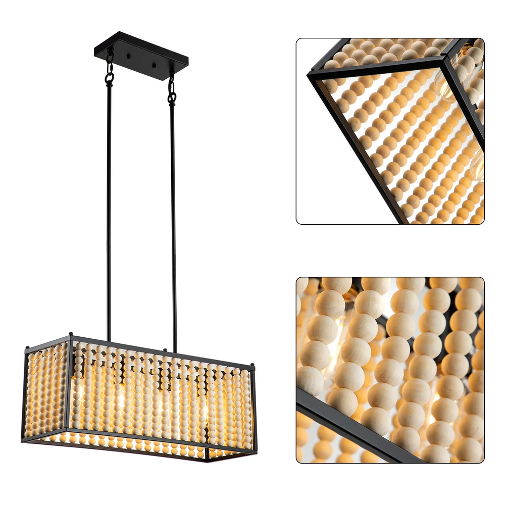 Boho Wood Bead Chandelier Pendant Lamp Farmhouse Hanging Ceiling Light Fixture Boho Wood Bead Chandelier Pendant Lamp Farmhouse Hanging Ceiling Light Fixture About this item Boho Style: This boho chandelier is comprised of numerous wooden beads that are suspended in an overlapping, ribbon-like design, giving this chandelier its Bohemian Style appearance. Natural Wood Beads: These beads are not cheap plastic beads, they are handmade from high-quality solid wood and have a smooth surface. Bohemia Stylish Design: Farmhouse Boho Light Fixture decorated classic Bohemia style elements made up of natural solid wood bead and high-quality painting Black Metal body Structure. , creating an eye-catching look that lends bohemian flair to any area Premium Material and Durable : the lamp body use quality metal body painted carefully, won't rust or peel paint.high-grade, eco-friendly solid wood beads, which polished with exquisite craftsmanship, easy for clean and won’t got moldy, making our boho beaded ceiling light super easy to clean. 【Adjustable Height】 This light features adjustable With a removable Combined lower rod. , you can adjust the height as you want to suit the house decor. The size:Max height of the Lower lever 35.23in(2x7.16in+4x11.96in). [Size & Height] Size as dining room chandelier:23.81"(D)x9.25"(H)x height of the Lower lever is 35.23''.Chandelier canopy: 4.7"(D) x 0.98"(H). Ceiling canopy: 9.84"(D) x 4.72"(W). [Bulb holder]: E26. Note: bulbs are not included. The lamp works fine when used with incandescent or LED bulbs with standardE26 bases.Maximum 40W,Please note: incandescent bulbs are not included [Compatible With Flat & Sloped Ceiling] You can install this rectangle pendant lighting on a flat or sloped ceiling to suit your decor in any places,It is suitable for industrial retro decoration such as living room, dining room, kitchen, bar, restaurant, hotel, barn, farmhouse, etc. Specifications - Material: Metal+Wooden bead - Number of Lights: 4 - Bulb base: E26 - Max.Power: 40W - Voltage: 110-120V - Type of Bulb: LED / CFL / Incandescent / Dimmable Bulb (bulb not included) What you get: 1 x Unassembed Pendant Light (Bulbs Not Included) 1 xScrews sets 1 xInstruction Manual Tips: -Please make sure the light is securely supported and is disconnected from power when installing. -Installing the light bulbs before hanging the makes the installation easier. ✔[Easy to install] Open the package and check the appearance of the chandelier. Follow the instructions to group the lights together and test their effects before installing them on the ceiling. In the process of assembling the lamp, please pay attention to check the position of each wire interface and tighten the fixing screws. Payment Delivery details Terms of sales About us Contact us Payment We accept ebay payment 。 Fees such as import duties, taxes are not included in the item price or shipping costs. These charges are the buyer's responsibility. Delivery details Shipping: 2-9 working days to: USA Terms of sales We maintain high standards of excellence and strive for hundred percent customer satisfaction. Feedback is very important to us. We hope that you contact us immediately before you give neutral or negative feedback, so that we can address your concerns. It is impossible to address issues if we do not know about them! About us Your satis faction is our ultimate goal. We work hard to earn your trust and future business. Our certified technicians have tested each item before shipping. The unit comes with 1 year limited warranty on all manufacturing defects. a) If you receive a defective item, you may return it or ask for a discount. Please contact us within 14 days after you receive the package. b) What you returned must be intact and in its original packaging as re? u. Customer is responsible for shipping costs of the returned item. c) We will cover the cost of shipping back t with the shipping rate indicated in the registration page. We will send you a new unit or refund the full payment you paid. Thank you. Contact us Business Hour Business Hour: Monday To Friday: 8:30 AM to 5:00 PM (Beijing China time) Due to time zones, our reply to your questions may not be immediately. But within above working time, we will reply your email within 24 hours. If it's non-workdays, please kindly be patient and wait till Monday. Please contact us with ebay message. Please feel free to contact us if you have any questions. Monday To Friday: 8:30 AM to 5:00 PM (Beijing China time) Due to time zones, our reply to your questions may not be immediately. But within above working time, we will reply your email within 24 hours. If it's non-workdays, please kindly be patient and wait till Monday. Please contact us with ebay message. Please feel free to contact us if you have any questions.