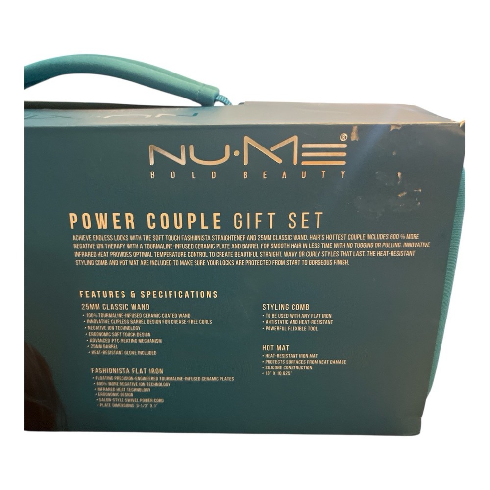 Nume Bold Beauty Power Couple Gift Set New Wand Flat Iron Styling Comb Hot Mat.