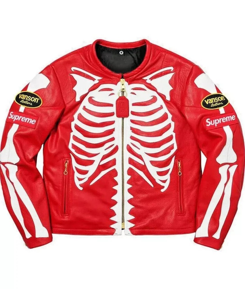 Bold Red Skeleton Leather Jacket for a Standout Look
