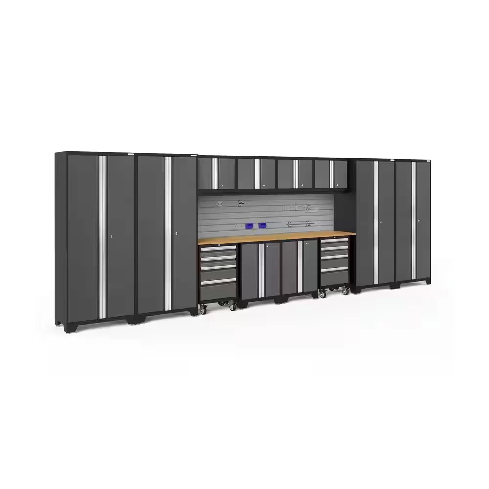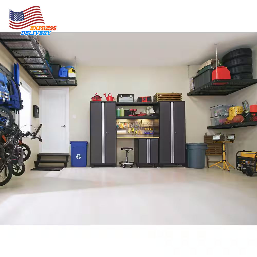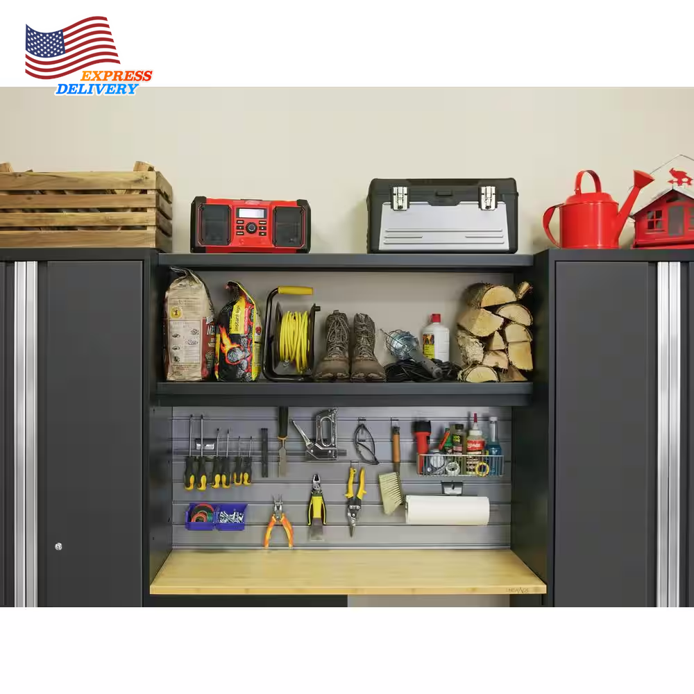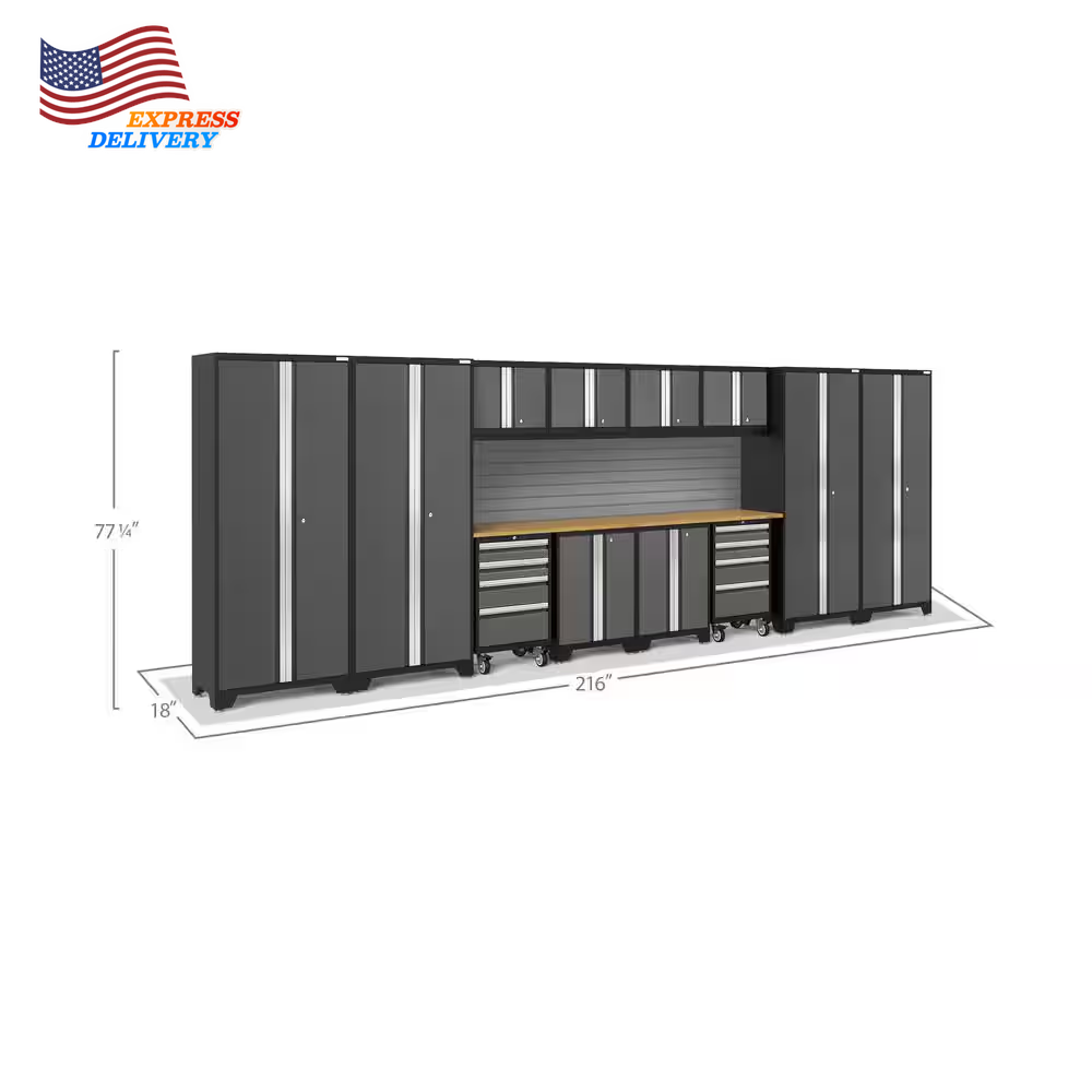 Store New Arrivals Add to Favorite View Feedback Contact Bold Series 14-Piece 24-Gauge Steel Garage Storage System in Gray Description Assembly Required Yes Assembly Type Pre-Assembled Color Family Gray Color/Finish Gray Features Adjustable Legs,Adjustable Shelves,Backsplash,Door Available,Drawer Available,Lockable,Scratch Resistant,Worktop Grade Standard Duty Included Base Cabinet,Handle(s),Slat Wall,Wall Cabinet Material Steel Number of Pieces 14 Returnable 90-Day Worktop Material Bamboo Manufacturer Warranty Limited Lifetime Assembled Depth (in) 18 in Assembled Height (in) 76.75 in Assembled Width (in) 216 in Steel construction and bamboo top ensure excellent durability Multiple shelves for storing a range of items Adjustable legs enable easy leveling on uneven surfaces Upgrade the look and organization of your garage with Bold Series Cabinetry. Built with heavy-duty 24-gauge steel for added strength, these cabinets are ready to hold everything from sports equipment to gardening tools and the durable coating ensures long-term protection against everyday heavy use. Full-length aluminum handles let you easily access your gear, with lockable doors to keep items secure. Full-extension drawers and adjustable shelves give you the customizable space to store items of all sizes. Our Slat wall Backsplash is a precision-fit, high-strength steel backing for your cabinet setup. The 3 in. on-center slat wall features a high-gloss powder coat paint finish. Resistant to rust, and easily wiped clean of dirt, paint and oil, this backsplash adds functionality and style to your workspace when paired with the Slat wall Accessory Kit. Get organized and improve the functionality of your garage, with a Bold Series Cabinet System. ABOUT US We offer the best prices around on high quality products. Our E-store includes media such as books, movies, music and games while offering electronics, toys, sporting apparel, clothing, tools, general home, garden items and more. SHIPPING We are always working hard to ensure your package arrives as soon as possible. Please understand that some factors like weather, high postal traffic, and the performance of shipping companies are outside of our control. We offer free shipping to the lower 48 states and ship within 2 business days of payment, usually sooner. We do not accept P.O. Boxes. Please provide a physical address. For shipping outside of the continental USA, we only use eBay's Global Shipping Program.The item is shipped to KY and then sent to the rest of the world. International customers are responsible for all duties and taxes. Continue to check out in order to calculate costs for shipping the item to your country. Messages regarding eBay's Global Shipping Program MUST be directed at eBay EXCLUSIVELY. RETURNS We offer a 30-Day Return Policy on items which you are not completely satisfied with. You have the option for a full-refund or an exchange of the item. No returns are available on items shipped outside of the USA. PAYMENT We accept PayPal. CONTACT US This page content is yet to come Please ad us to your favorite seller and visit again later Thank You CUSTOMER SATISFACTION We try our very best to make sure every customer is completely satisfied. If there's a problem, message us! We're happy to help. WE ACCEPT Copyright © 2021 AutoDS. | All Rights Reserved