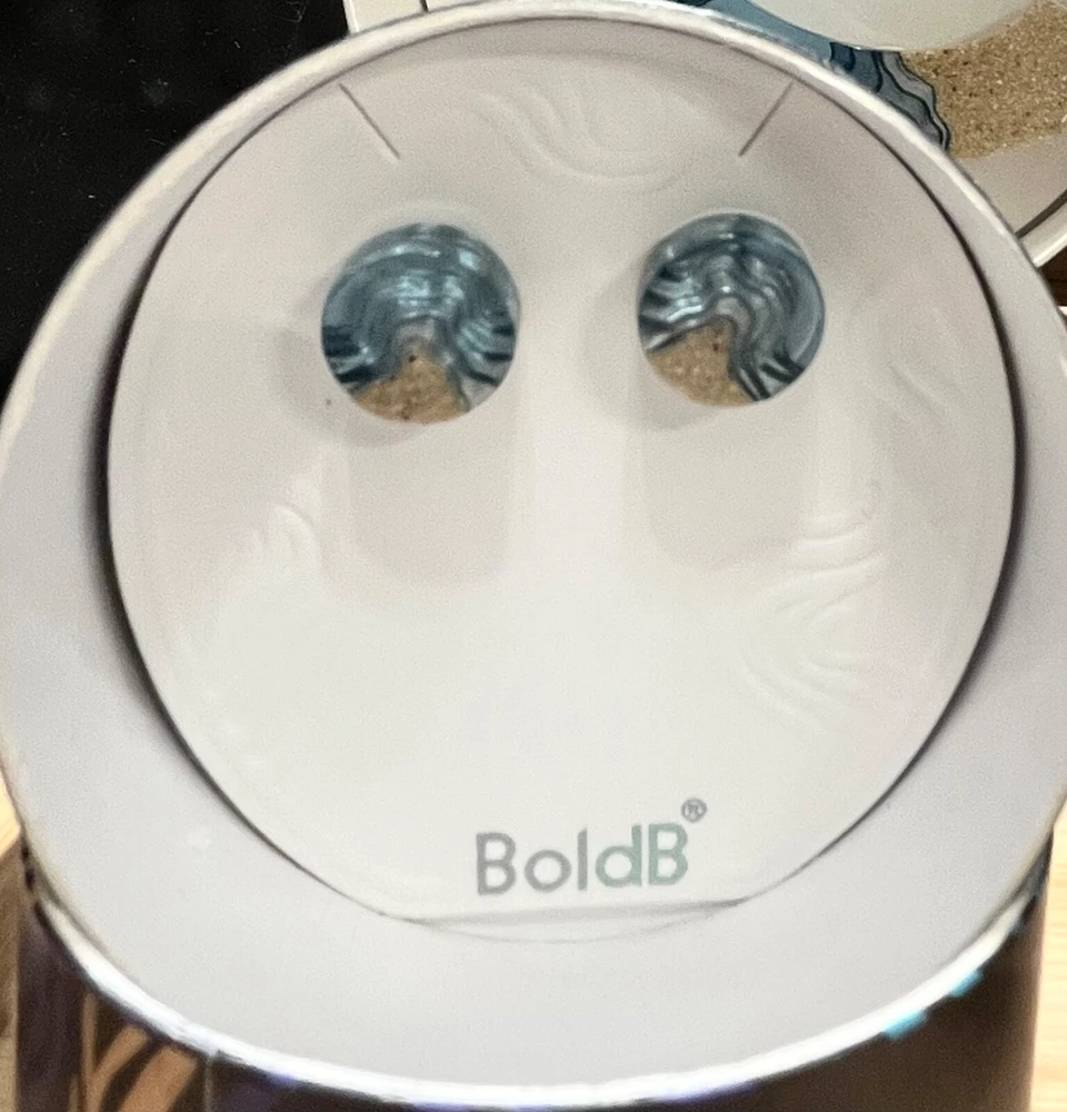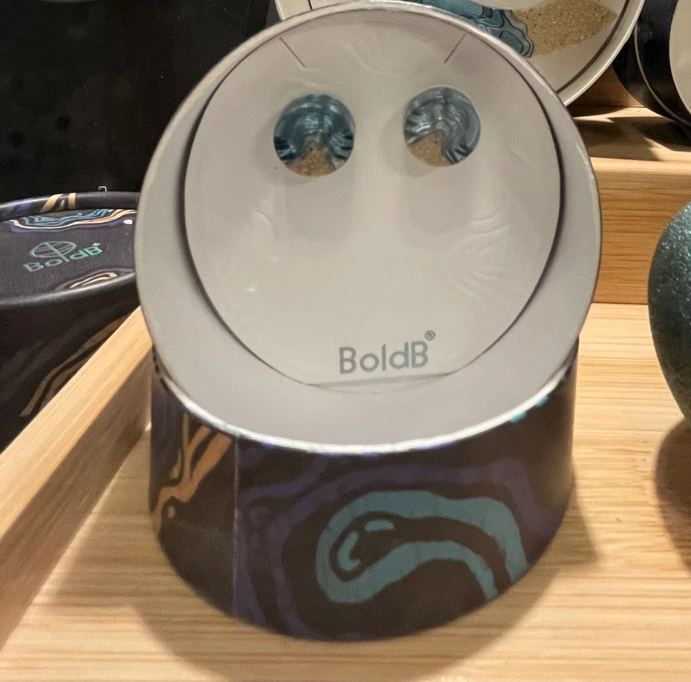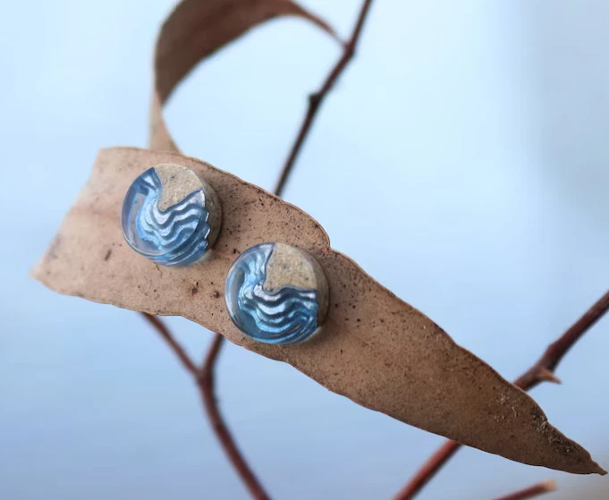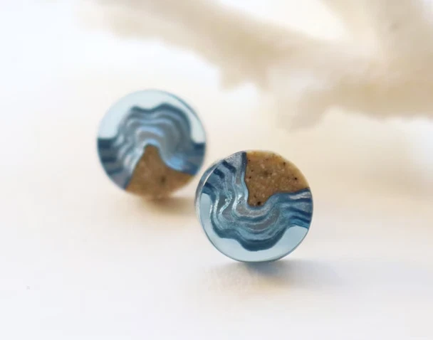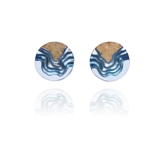 BoldB Shoal Stud Earrings. Shoal - a submerged sandbank exposed at low tide -Our Shoal Ear Studs have been carefully handmade from bonded beach sand, ultramarine blue resin and metal pigments with a high-gloss polished finish -A metal ear post has been attached to a shallow recess on the back of each earring -All metal parts are rhodium plated The earrings have been designed in Melbourne, Australia, and carefully handmade in the Philippines.