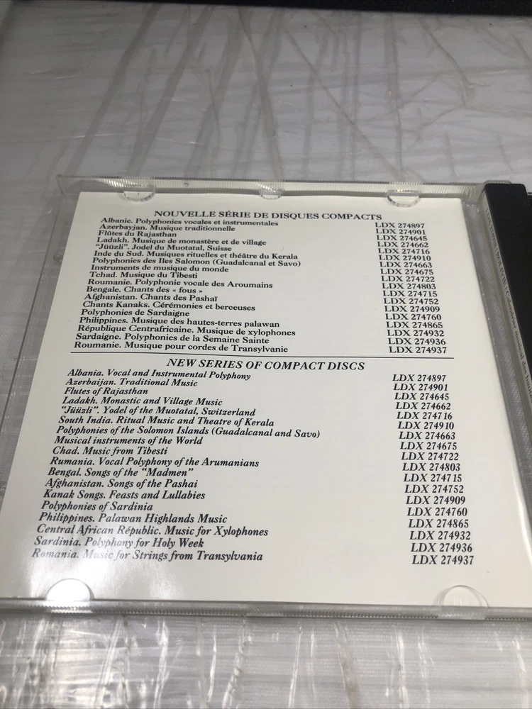 Experience the rich heritage of Bolivia with this vintage Spanish CD titled "Bolivia Mystiques Calendaires Des Vallees Centrales". The album features beautiful folk music from various artists, making it a perfect addition to any music lover's collection. The CD is in great working order and comes in its original packaging. Immerse yourself in the unique sound of Bolivia with this rare gem. The album showcases the country's rich history and culture through its music. This is a must-have for anyone interested in exploring the folk music of Bolivia. Get your hands on this vintage CD today!