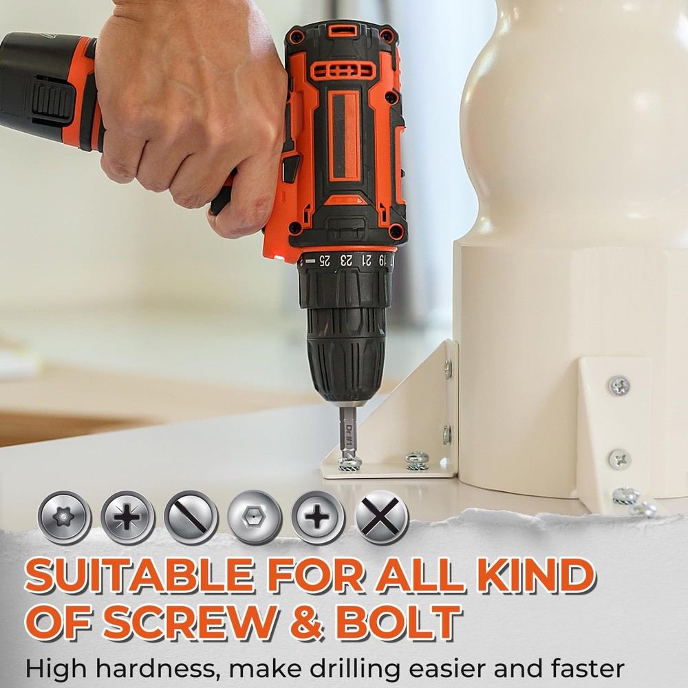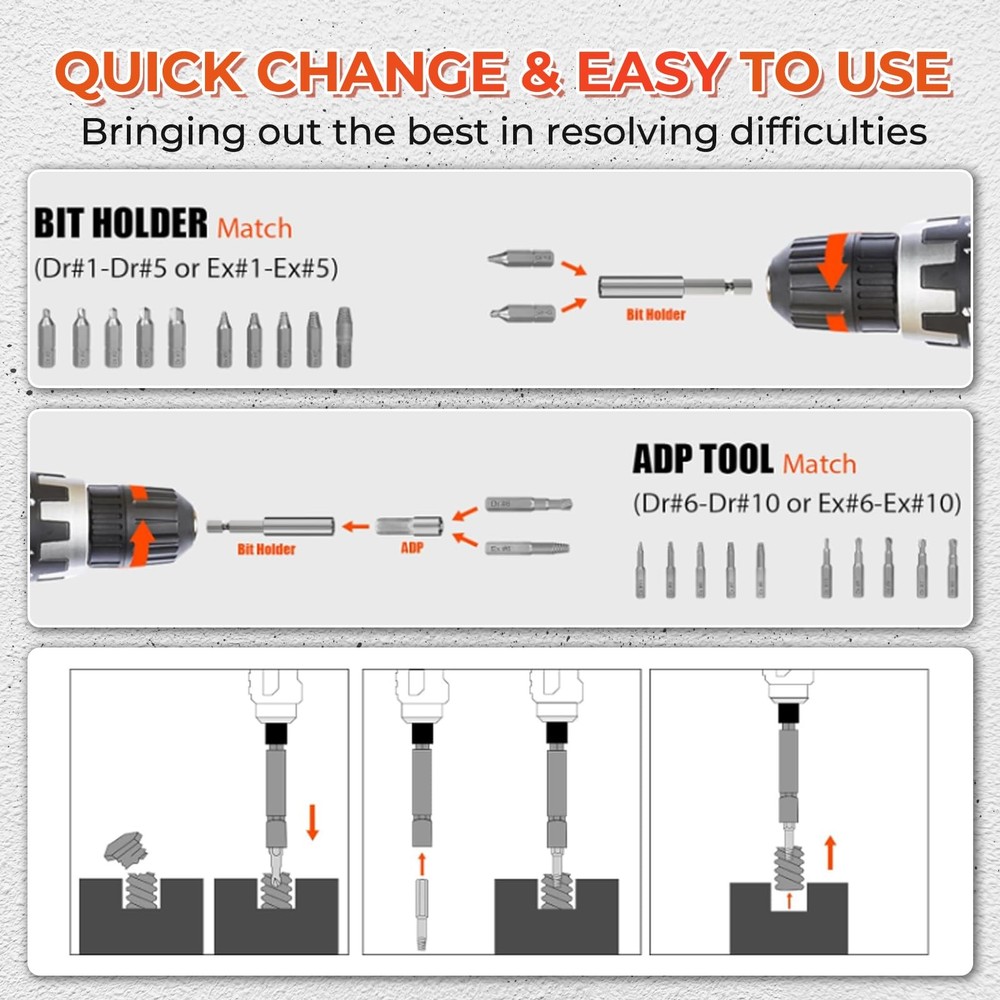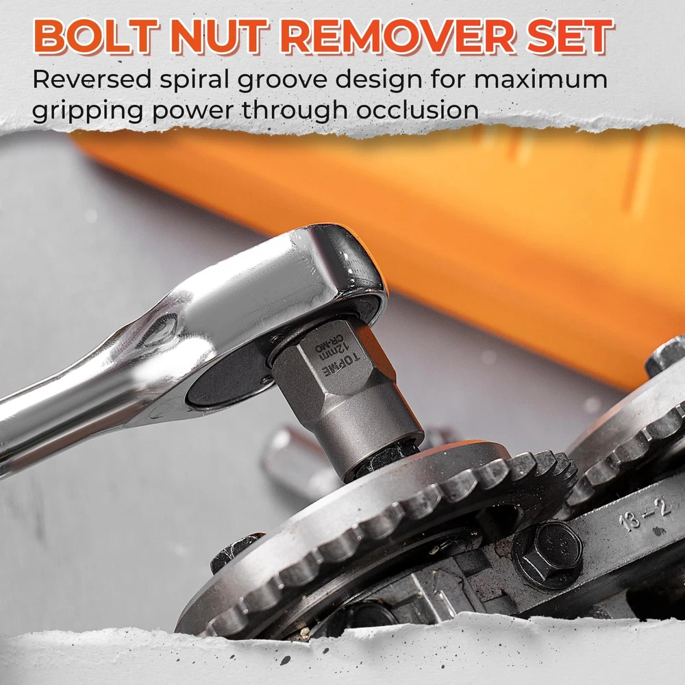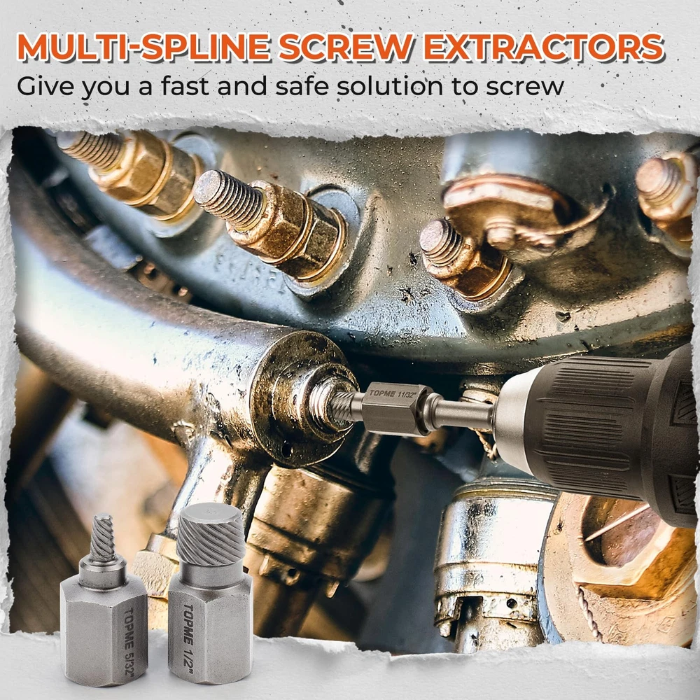 The stripped screw extractor is a comprehensive tool kit designed to help professionals and DIY enthusiasts easily remove damaged studs, bolts, and screws. This bolt extractor set is perfect for various applications such as automotive repairs, construction projects, and household maintenance. The reverse drill bit extractor set includes different pieces, each specifically designed to tackle different sizes and types of damaged fasteners. The drill sets features a 3/8" inch drive hex-head, providing a secure grip and compatibility with standard ratchets, sockets, and wrenches. The multi-spline rounded bolt remover tool is the highlight of this set. It is engineered with precision to grip rounded, damaged, or stripped bolts and screws firmly. This allows for effective extraction without further damaging the surrounding materials. Crafted from high-quality materials, the small screw extractor is built to withstand heavy-duty use and provide long-lasting performance. The durable construction ensures that the extractors maintain their shape and grip, even when dealing with stubborn or rusted fasteners. Using the strip screw removal kit is straightforward and user-friendly. Simply select the appropriate extractor from the set, insert it into the damaged fastener, and apply clockwise force to loosen and remove the fastener. The screw extractor kit also comes with a handy storage case, keeping all the pieces organized and easily accessible. Investing in the screw bolt extractor set will save you time and effort when dealing with damaged fasteners. No more frustration or wasted money on expensive replacements - this stripped bolt remover provides a cost-effective solution to remove damaged screws, bolts, or studs with ease and precision.nut and bolt extractor set,ease out bolt extractor,bolt removal tool,stripped bolts,bolt and nut extractor,stripped socket remover,easy out bits,stripped bolt head removing sockets,screw & bolt extractor set,bolt grip extractor,stripped bolt extractor set,stripped bolt extractor kit 🔨 Superior Quality: Each extractor set made from CR-MO steel and HSS 6542 with a maximum Rockwell hardness of 68 HRC, good process performance, high strength and toughness. The inside left-hand design creates a 135° angle for faster tapping while resisting corrosion. ⚒️ Widely Usage:High-density spiral screw extractor set design helps to remove broken bolts, nuts, studs, fittings, threaded pipes and pins faster. The easy outs extractor sets is a flexible aid for everything from automotive work to home design and craft hobbies. 🔩 Easy Removal: With this broken head bolt nut extractor and left-handed drill bit kit, you can simply remove peeling bolts, broken nuts and frozen lug nuts. Damaged bolts can be easily removed from tight spaces, and left-handed drill bits have even saved a mangled bolt head. ⚙️ Versatile Accessories: 63PCS stripped screw removal tool comes with just about anything you might need to resolve a stuck or damaged fastener or bolt. Consists of 5pcs left hand hss drill bits,13pcs multi-spline screw extractor kit,5pcs easy out spline screw extractors,16pcs stripped bolt extractor, 20pcs small screw extractor set and 4pcs compatible adapter. 🔧Easy to Carry: The damaged screw extractor set is well-assembled.The engraved labeling beneath each tool and carrying case keeps everything clean and organized. It is versatile equipment that may be used on bicycles, boats, trucks, SUVs, and other vehicles.
