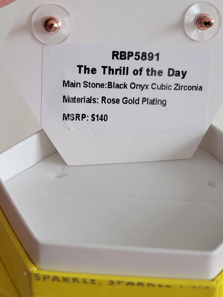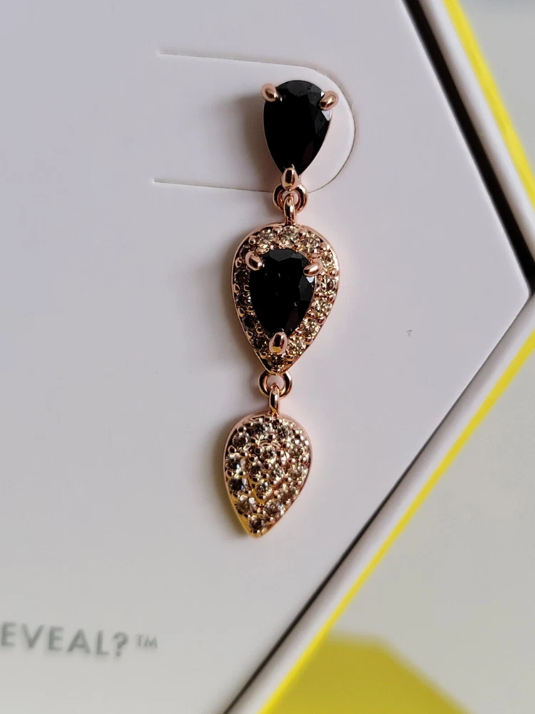 Bomb Party BORG Earrings RBP 5891 "The Thrill of the Day" Black Onyx Cubic Zirconia, Rose Gold Plating. New, never worn, in original box. Ships USPS Ground Advantage.