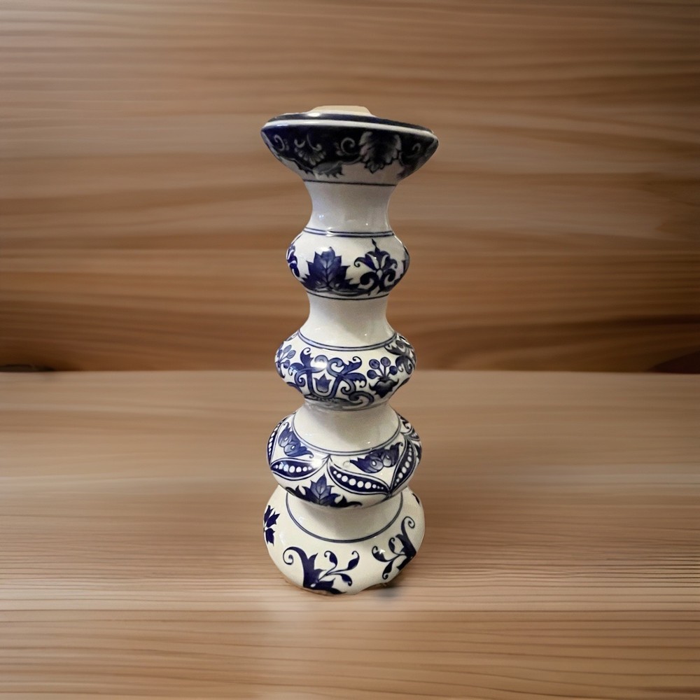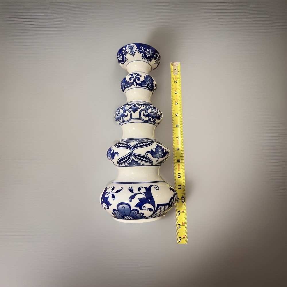 The Bombay Company 12" Candlestick Holder in Blue & White Chinoiserie is a large, glazed porcelain candle holder featuring a floral Asian-inspired design. This elegant piece, measuring 12 inches in height and 5.5 inches in width, is perfect for all occasions and adds a touch of sophistication to any space. Imported from China in the late 20th century, this unique candle holder is a beautiful addition to any home decor collection, weighing 2 pounds and 12 ounces.