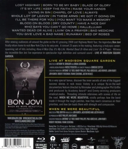 Further Details Title: Bon Jovi: Live at Madison Square Garden Condition: New Description: Blu-ray/Region All pressing. Jon Bon Jovi, Richie Sambora and the gang are captured live on stage at New York's famed Madison Square Garden on this exciting live DVD from New Jersey's finest Rock 'n' Roll band. From early hits like 'Runaway' and 'You Give Love a Bad Name' to tracks from their Lost Highway album, this 2008 performance is filled with hits, fan favorites and some surprises as well. Features 23 tracks total. The Blu-ray version contains a special extra, filmmaker Phil Griffin's recently released Bon Jovi documentary When We Were Beautiful. Following the band on 2008's world tour and panning back through their history, it is a fascinating insight into the workings, art, camaraderie, ups and downs of a truly megastar rock band. Universal. Format: Blu-ray Director: Anthony M. Bongiovi, Brian Lockwood Actor: Jon Bon Jovi, David Bryan, Richie Sambora, Tico Torres Rating: Unrated No Of Discs: 1 Release Date: 05/11/2010 Studio: Island Subtitle Language: French, German, Japanese EAN: 0602527246888 Country/Region of Manufacture: USA Region Code: Blu-ray: A (Americas, Southeast Asia...) Language: English, English Release Year: 2010 Missing Information? Please contact us if any details are missing and where possible we will add the information to our listing.