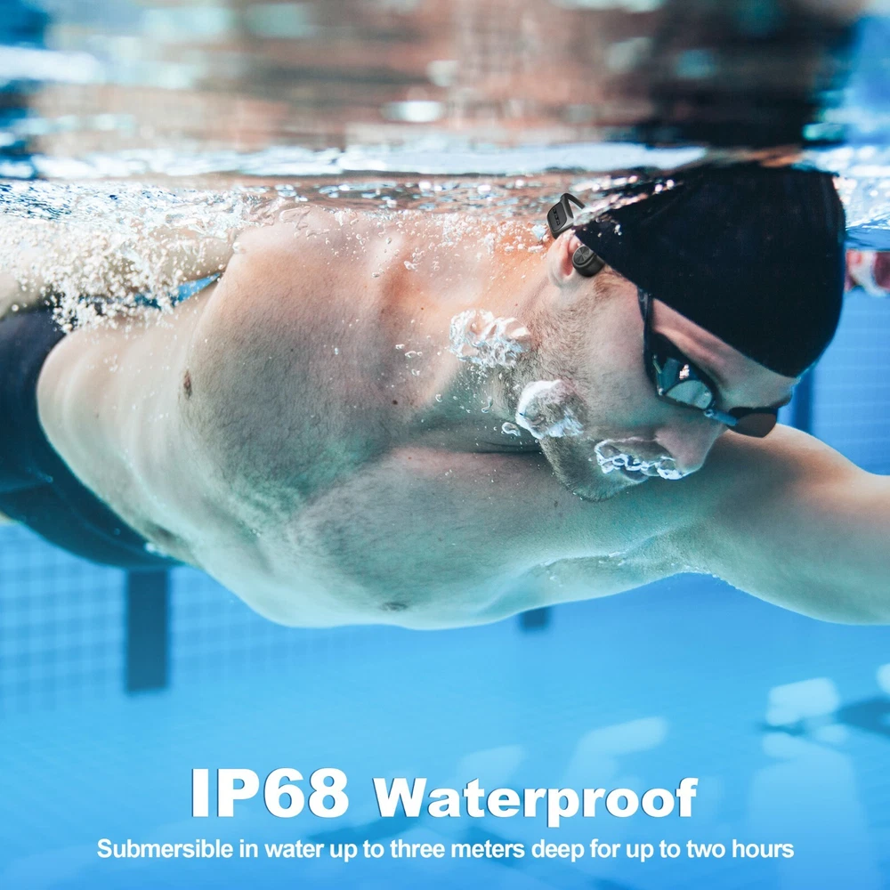 About this item 【Open-Ear Headphones】:Wantek Bone conduction headphones feature a completely innovative open-ear design for all-day listening without ear fatigue, the running headphones can securely rest and firmly fit your ears without entering your ear canal, which will reduce stress after extended wear 【IP68 Waterproof & Sweatproof】:Our waterproof headphones with IP68 waterproof rating standard certification, which can prevent sweat, dust, and moisture. With our waterproof and sweatproof sport headphones, even if you sweat during or rain your exercise, it is durable enough for you to experience a hassle-free workout. Great for outdoor and indoor sports such as swimming running, cycling, hiking, working etc 【 Bluetooth 5.3 & 32GB MP3 Storage 】:New bone conduction headphones using the latest 5.3 version of Bluetooth technology, the connection is more stable, Faster connection, wider range, stable connection up to 33 feet without delay; Built-in microphone supports connecting to any Bluetooth-enabled device,This Swimming Headphones You can also easily download MP3 by connecting the magnetic charging cable to your computer. 32G memory supports you download 5000+ songs into the designated folder 【Lightweight & Comfortablet】:This Cycling headphones weigh only 32g,use a wraparound titanium frame and stretched without deformation and fits your head. The earbud-free design allows you to listen throughout the day without ear fatigue, and is compatible with glasses, hats, etc 【Super Long Standby】:This open-ear sport headphones let you enjoy extended music sessions. Just 2 hours of charging provides up to 8-10 hours of music,quick 5-minute charge offers half an hour of playback,standby time up to 240 hours.click Bluetooth"BC3 Pro"to pair