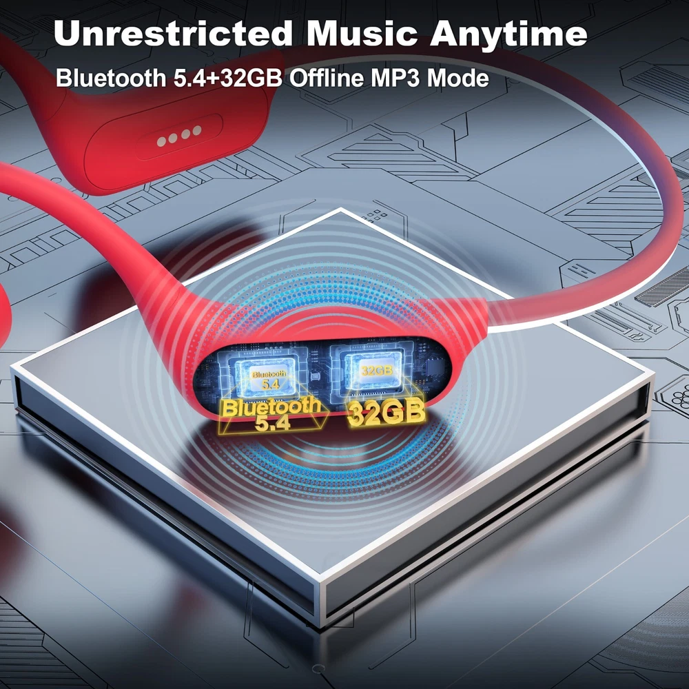 About this item 【Open-Ear Headphones】:Wantek Bone conduction headphones feature a completely innovative open-ear design for all-day listening without ear fatigue, the running headphones can securely rest and firmly fit your ears without entering your ear canal, which will reduce stress after extended wear 【IP68 Waterproof & Sweatproof】:Our waterproof headphones with IP68 waterproof rating standard certification, which can prevent sweat, dust, and moisture. With our waterproof and sweatproof sport headphones, even if you sweat during or rain your exercise, it is durable enough for you to experience a hassle-free workout. Great for outdoor and indoor sports such as swimming running, cycling, hiking, working etc 【 Bluetooth 5.3 & 32GB MP3 Storage 】:New bone conduction headphones using the latest 5.3 version of Bluetooth technology, the connection is more stable, Faster connection, wider range, stable connection up to 33 feet without delay; Built-in microphone supports connecting to any Bluetooth-enabled device,This Swimming Headphones You can also easily download MP3 by connecting the magnetic charging cable to your computer. 32G memory supports you download 5000+ songs into the designated folder 【Lightweight & Comfortablet】:This Cycling headphones weigh only 32g,use a wraparound titanium frame and stretched without deformation and fits your head. The earbud-free design allows you to listen throughout the day without ear fatigue, and is compatible with glasses, hats, etc 【Super Long Standby】:This open-ear sport headphones let you enjoy extended music sessions. Just 2 hours of charging provides up to 8-10 hours of music,quick 5-minute charge offers half an hour of playback,standby time up to 240 hours.click Bluetooth"BC3 Pro"to pair