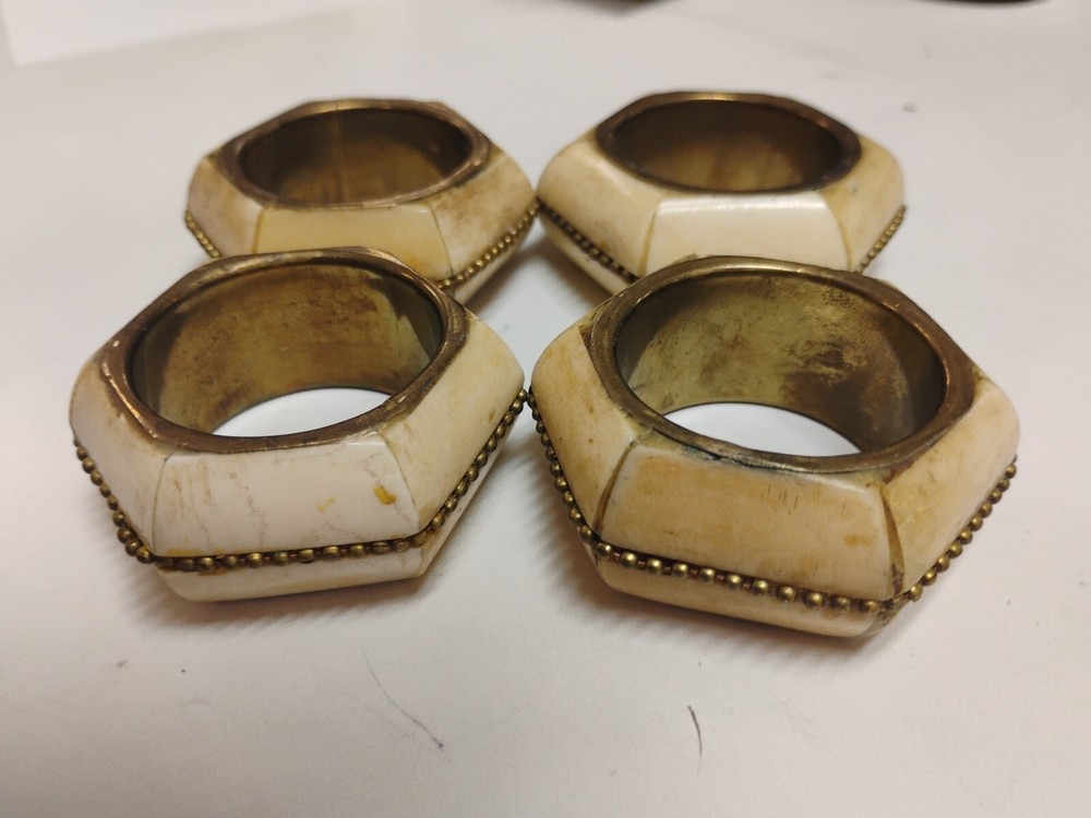 Bone and Brass Napkin Rings Set of 4 Elegant Dining Accessories