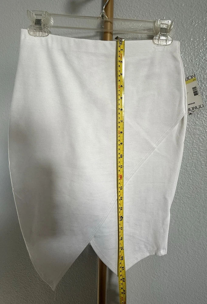 NEW! Bongo white skirt size medium This elegant white skirt is perfect for any occasion. Its sleek design offers a sophisticated look. 95% polyester, 5% spandex About 13 1/2” at waist 19” long and then about 21 1/2” long where the style sits a little longer (see photos)