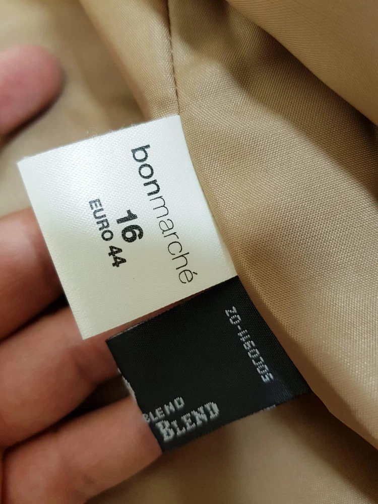 This Bonmarché coat is a stylish addition to any wardrobe. The wool blend material ensures both warmth and comfort, while the beige colour and mid-length cut make it perfect for any occasion. The coat features a button front closure, a collared neckline, and is lined for extra warmth. With its classic design, this coat is suitable for both casual and travel wear. Hand wash only, the coat is made in the United Kingdom and is available in size 16 (EUR 44). Perfect for autumn, winter, spring, and summer, this coat is a must-have for any fashion-conscious woman. In Good Used Condition Measurements In inch : Please see photos above for all measurements I will ship this item out via Evri 2-3 Day Mail with a tracking number for confirmation I ship items out EVERY DAY so EXPECT a QUICK delivery! Please feel free to ask any questions you may have I answer most questions instantly! PLEASE NOTE THAT ALL OUR ITEMS ARE %100 AUTHENTIC Please Note that all our items are from smoke and pet free Environment. #05/03/24# (B222) PLEASE VISIT MY STORE AND CHECK MY OTHER ITEMS THANK YOU