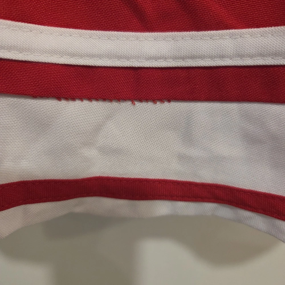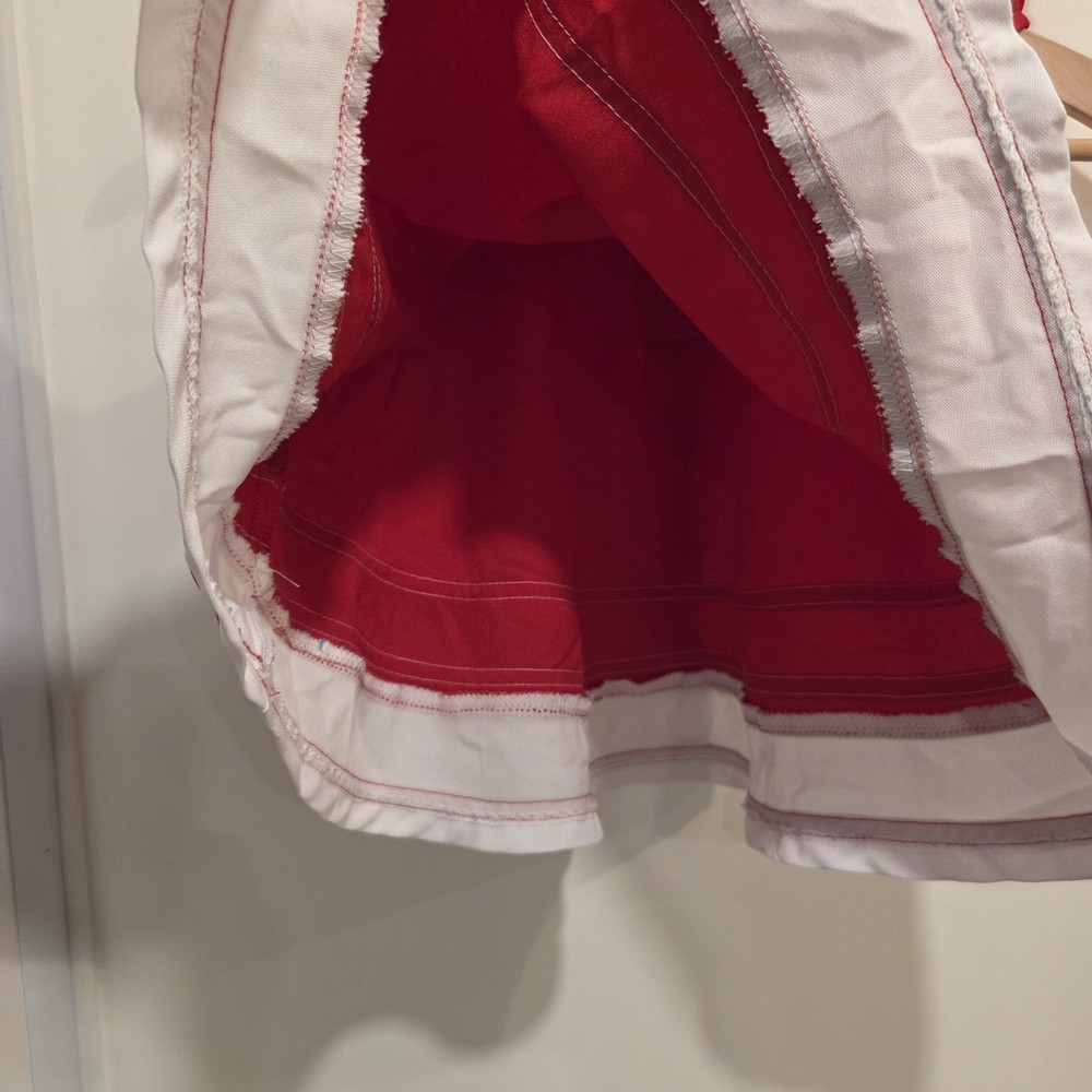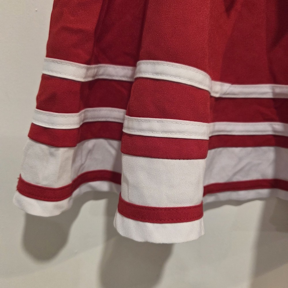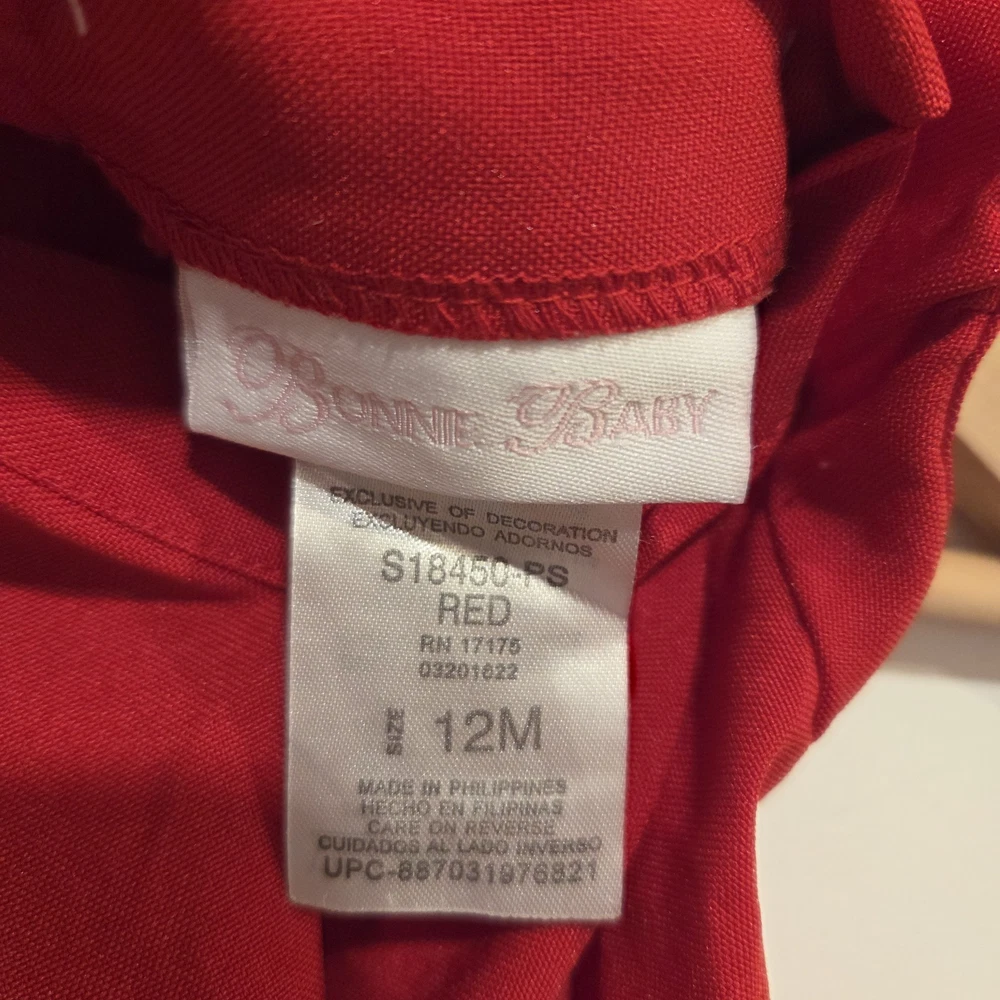 The Bonnie Baby Girls Red Sailor Dress in size 12 months is a charming and nautical-themed option for your little one. The sleeveless design with a Peter Pan neckline and button closure offers both style and comfort. The A-line silhouette and short dress length make it perfect for parties and formal occasions, while the red color adds a pop of vibrancy to any outfit. Perfect for summer and spring seasons, this dress is a timeless piece that will have your baby girl looking adorable and stylish. Length 15" Pit to pit 11" This is only the dress. I do not have the bloomers that go with it. *** please picture of seam and stitching showing through on white