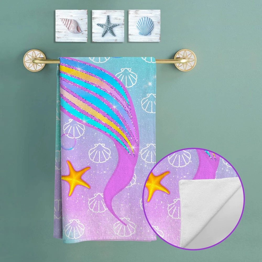 Absolutely love this mermaid beach towel! The microfiber material dries super fast and repels sand like magic—just a quick shake and it’s gone. Perfect for beach days, poolside lounging, or even yoga. The vibrant teal tail design is gorgeous and stands out, plus it’s soft and lightweight for easy packing. Great for kids and adults—such a fun, practical gift!
