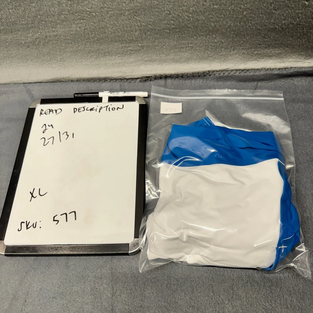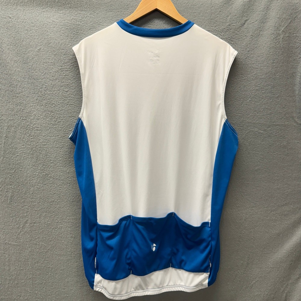 Bontrager Cycling Jersey Mens XL Solstice Sleeveless 2/3 Zip Blue White Activewear + Back Pockets Very good condition, see all pictures for views. •Pit to pit: 24" •Shoulder to hem: 27" Front 31" Back Thank you for your purchase, we appreciate you!