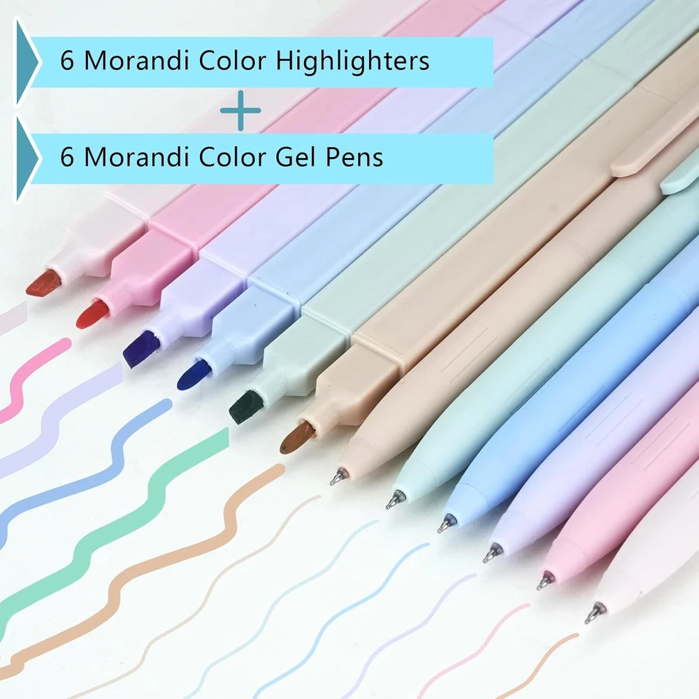Product Description Package includes: 6x highlighters 6x colored gel pens 120x book tabs CHOKING HAZARD -- Small parts. Not for children under 3 yrs. 🎁[Value Combination for You] Package includes: 6x highlighters + 6x colored gel pens + 121x book tabs. The aesthetic school supplies set in harmonious and vibrant colors helps you marking the highlight and increase efficiency while keeping you stylish, making reading, studying, and working easier. ✨[Double Ended Highlighter] Unlike other single-tip highlighters, our dual-tips highlighters not only have chiseled nibs that can easily draw both wide and narrow lines for large smearing and precise underline, but also have normal fine nibs for normal writing. One pen for multiple uses makes learning and working more efficient and saves storage space. The soft color highlights the key points without covering the content, making the content eye-catching without hurting your eyes. 🌈[Colorful Gel Pens] The Morandi colored aesthetic pens offers 7 different colors for smooth writing. With a non-slip and soft silicone grip, this pen is very comfortable to hold. Each pen has a portable clip that can be clipped to a book or pocket for easy carrying and storage. The retractable design is not easy to dirty the pen case or pocket. 🏷The 1*1.2inch colorful sticky tabs help you mark key points or categorize documents. One half of the tab is transparent which won't block the content. The other half is suitable for writing with a gel pen, fountain pen, ballpoint pen or pencil which is convenient for you to mark the tips or notes needed. The annotation tabs are self-adhesive, so you can stick them over and over again, and they won't damage the paper when you tear them off. 🖍Highlighting Bible, notes, journals, or any book you want to read in vibrant colors! They are ideal for Bible study supplies, book annotation kit and aesthetic school supplies. These cute pastel pens are lightweight, small and not bulky, perfect for journaling, planning, working, studying, taking notes, annotating at school, college, home, office or even while traveling.