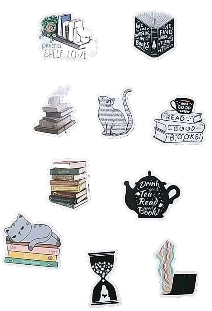 Book Cat Hourglass Stickers Kindle Scrapbooking Set x10 Cats Books Lot Plants