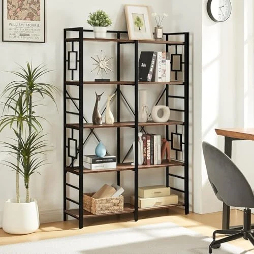 Return Policy Fast Delivery Trusted seller Book Shelf, Industrial Double Wide 5 Tier Bookshelf, Tall Bookcase with Wide Shelf for Storage and Display, Large Home Decor Bookcases for Living Room, Office, Rustic Brown Product Description Stylish Design: Our double wide bookshelf fully utilizes every inch of your area, providing oversized storage; the sides are designed with a unique geometric frame, combining industrial and rustic style, while also preventing your items from falling, taking into account the practicality and aesthetics, and are highly adaptable to your home style More Storage Space: Our faux wood bookshelf has 5 tiers of open shelving, and the extra large storage space ensures you can display a variety of items without sacrificing style or space, keeping your space neat and organized; Meanwhile, the upgraded design of the top of our tall bookshelf has a frame that increases storage while preventing items from falling off the sides; Stnading shelf Size: 60.47" H x 39.37" W x 10.24" D Multifunctional Use: The industrial bookshelf can be used as a bedroom bookcase, living room display shelf, room divider bookshelf, kitchen organizer, entryway storage shelf, office book shelf, easy to improve the space utilization; it can be used as an home decor shelf while storing items High Quality Materials: Made of sturdy metal material and high-quality faux wood grain boards, which makes this 5 tier bookshelf can be used for a long time; the delicate wood grain finish is smooth to the touch and easy to clean; the large "X" on the back and the adjustable feet increase the stability and balance of the tall bookcase Easy Assembly: The package of this metal bookshelf contains instructions with detailed steps, according to the steps of the assembly instructions, the installation of this heavy duty bookshelf will be an easy work; Please remember to install the anti tilting tool on the wall for better stability and less unexpected injuries Shipping Returns Payment Shipping Shipping is FREE to all addresses other than APO/PO boxes in the lower 48 states. All our stock ships from US-based warehouses. Shipped via USPS or UPS (depending on location and package weight) Unless stated otherwise, all orders will ship within 24-72 hours of your payment being processed. Check our feedback to see the great reviews of FAST shipping we offer. Returns Seller does not accept returns Payment We currently accept payment via eBay managed payments only. Once payment is cleared, we will dispatch your shipment within 1-3 business days. Please refer to the "Shipping" tab for more information regarding shipping speed to your destination.