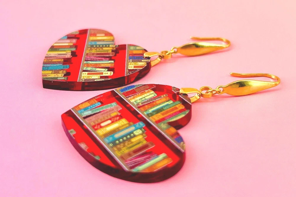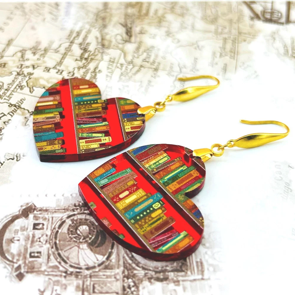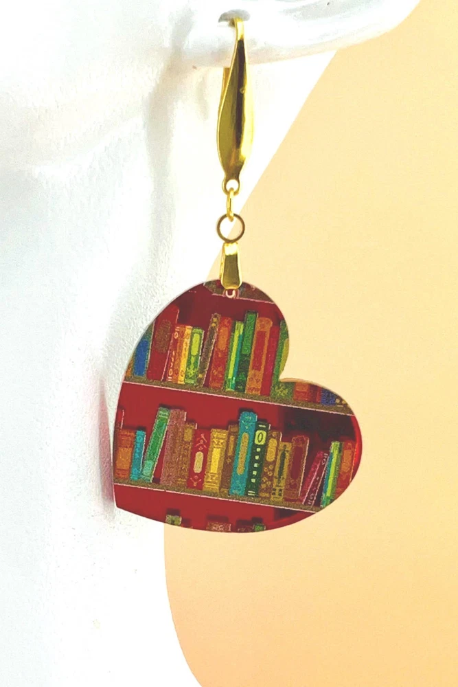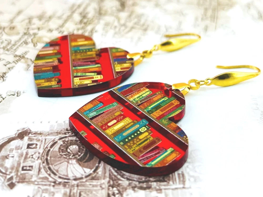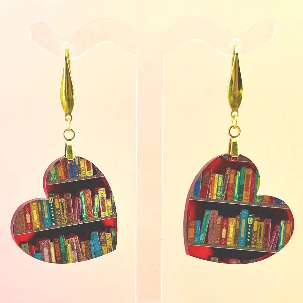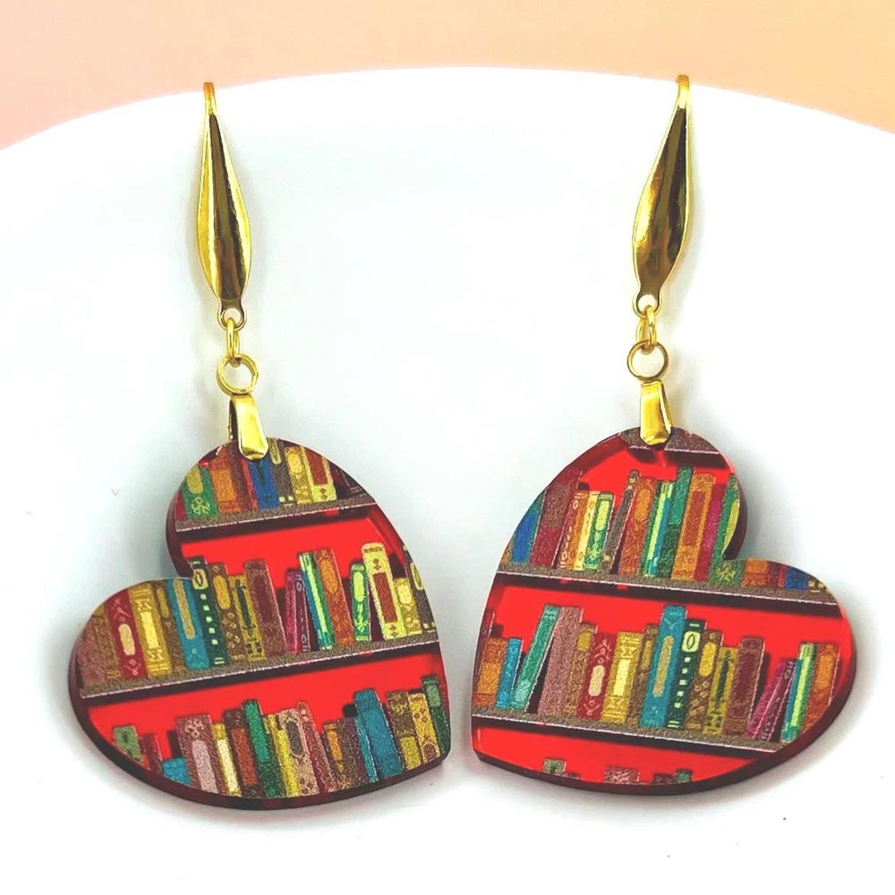 Surprise your favorite bookworm with these charming bookshelf earrings! Perfect for teachers, librarians, and graduates, these unique earrings make a thoughtful Valentine's or Mother's Day gift. Show off your love for books with these adorable accessories! Lightweight Acrylic Earrings on a Stainless Steel hook. Earring hardware is stainless steel, and nickel/lead free. 🌟(Please see pictures for size information)🌟 Each earring is laser cut from acrylic and assembled by hand in our studio. 🌟Due to variation in the patterns and handmade processes, each earring will vary earring to earring. No two earrings will be identical but will look similar to what is pictured! Each pair of earrings comes on an earring card with silicone backers and packaged in an organza bag. Perfect for gift giving! We currently do not offer more gift-wrapping options. Shipping: All purchases are shipped in a box with tracking so that they arrive safely to you! Currently we only ship to US postal addresses. We have a set standard shipping time of 1-3 business days from the time your order is placed. Everything in our shop is already handmade and ready to ship FAST! Please be aware that unexpected delays can occur, which you will be notified at the time of any such occurrence. Jewelry Care: 🌟Each piece is delicate! Avoid dropping or bending! 🌟Do Not expose to excessive moisture, please remove jewelry before showering, swimming, and sleeping. 🌟Avoid abrasives, perfumes, lotions, excessive heat, chemicals etc. These may deteriorate your jewelry and may damage its appearance. 🌟Clean with the soft cloth we have included in your package (and it is FREE of Charge!) No Returns: Due to hygienic and safety reasons, ALL SALES ARE FINAL. We DO NOT accept returns. In the event you have an issue with your purchase, please feel free to message us on Etsy to discuss any possible resolution.