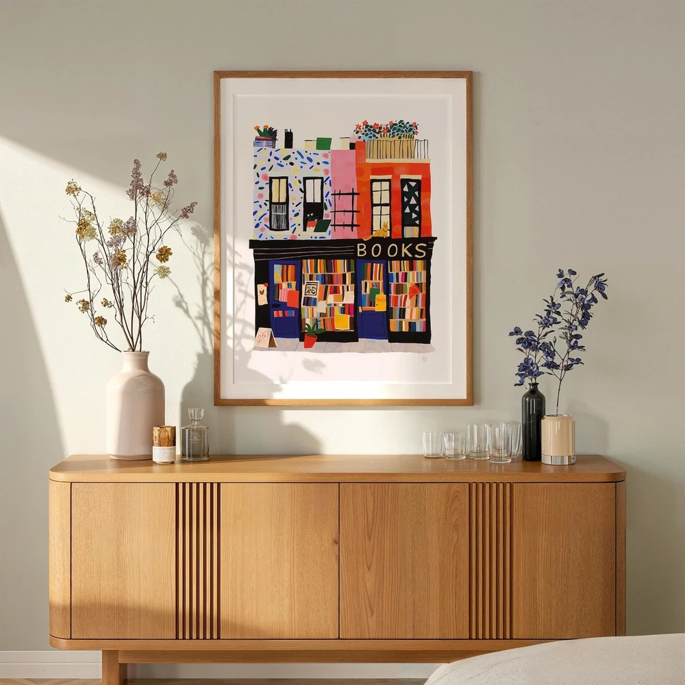 Bookstore Art Print Bookworm Art New York Bookshop Illustration Literary Wall Art Cozy Bookstore Decor Book Lover Gift Material: Premium luster photo paper Print type: Inkjet printing One side printed + The finish provides the highest possible resolution and color saturation + Lasts up to 200 years in color and 400 years in black-and-white + Printed on high-quality resin-coated photo base paper medium + Posters can be hung with double-sided tape, tacks, or framed + Hand washing with a gentle cry cloth is recommended for extended durability I will hand select the best choice of paper for your chosen design to ensure top quality results for a beautiful, bright and luxurious print. All prints are sealed in cellophane slips for protection during transportation, and are shipped in a protective cardboard envelope.
