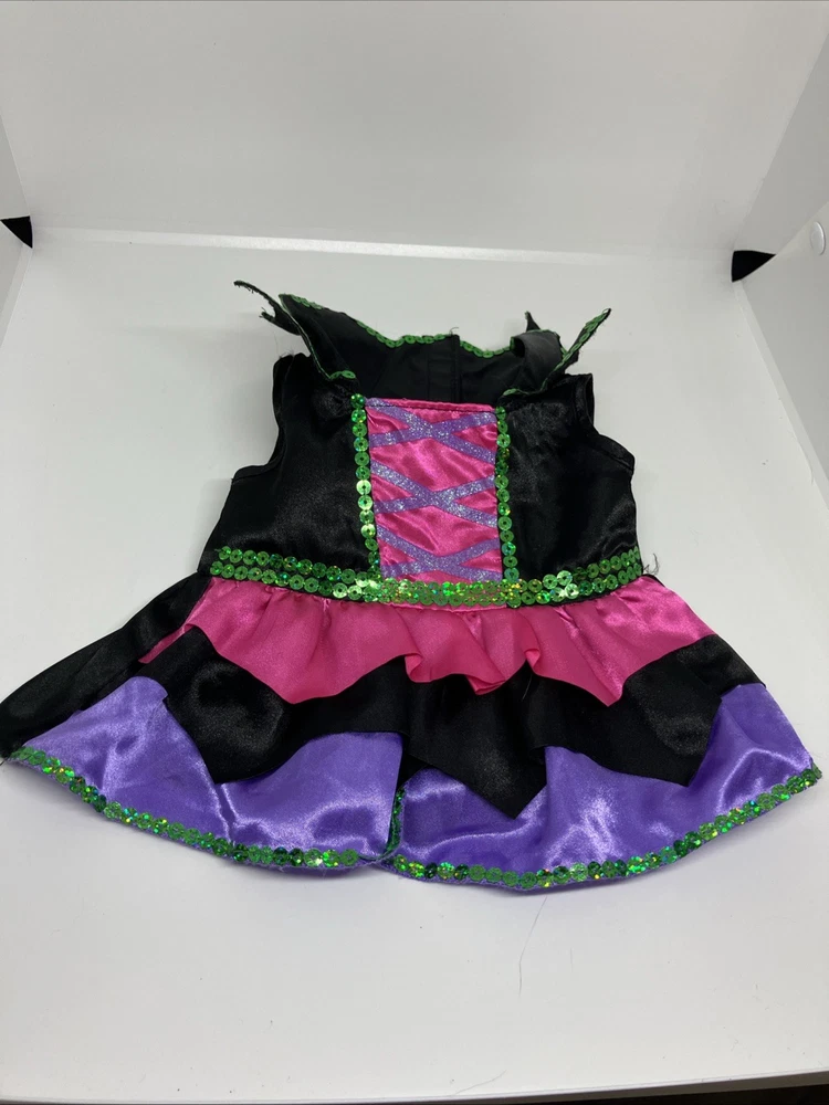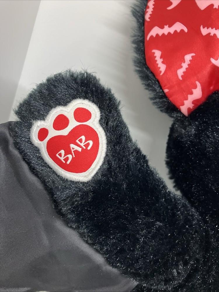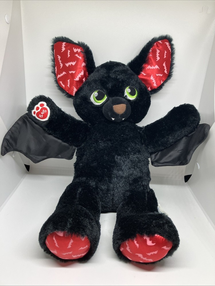 Build A Bear Boorific Bat Plush Red Print Black Halloween Toy 17” With Dress. Dress has loose threads. See photos