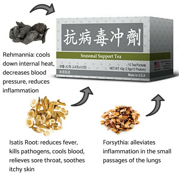 Seasonal Support Tea 抗病毒沖劑 Details: Seasonal Support Tea is a unique herbal tea blend to help promote and maintain general well-being during the changing seasons. Seasonal Support Tea will help build the immune system and get through common colds faster. Ingredients: Isatis Root, Forsythia, Grass-leaf, Isatis Leaf, Rehmannia. Directions: Use 1 packet, 2 times a day. Use boiling water and steep for 5 minutes. Ready to serve. For best results, the packet may be used more than once. Packing: 15 Tea Bags (2.8g ea) KEEP OUT OF REACH OF CHILDREN Do not use if you are pregnant. Made in USA "This statement has not been evaluated by the Food and Drug Administration. This product is not intended to diagnose, treat, cure or prevent any disease." KEEP OUT OF REACH OF CHILDREN Do not use if you are pregnant or lactating. Store in a cool, dry place. We are the manufacturer and all products are Made in USA. Safety : Do not use if pregnant or nursing. Keep out of reach of children. Please consult your health care provider if currently under care or treatment. Do not exceed recommended serving. See product packaging for additional safety information. Disclaimer: Individual results may vary. This product is not intended to diagnose, treat, cure or prevent any disease. Advice on treatment or care of an individual patient should be obtained through consultation with a trained healthcare practitioner. Return/Exchange Policy Your satisfaction is guaranteed! If for any reason you are unhappy with your item, just return it within 30 days for a refund, minus shipping cost. Please contact us prior to initiating a return so that we can issue you a refund authorization. The best way to start a return is by contacting us first so we can assist you. If your order arrives damaged please contact us so we may immediately solve the issue & ship you another item. The buyer is responsible for any return shipping. Shipping Policy: We ship via USPS, FEDEX or UPS and we do not ship to PO/APO Boxes. The handling time is 1 business day, weekends and holidays are not considered business days. The majority of shipments will be delivered within the estimated shipping times, but sometimes delays can occur. DOES NOT SHIP TO: Germany, Puerto Rico, Brazil, Mexico, Gibraltar, Peru, Bolivia, Ecuador, Czech Republic, Slovenia, The United Arab Emirates, Romanian, Serbia, Colombia, Chile, EI Salvador, South Africa, and other remote areas. Please note delivery time is an approximation and may vary depending on distance as well as customs regulations All items are in stock when they are listed. Inventory is tracked and updated regularly. However, if demand exceeds our supply, we will give the customer the following options: Full refund (or) Have the item back ordered and shipped when it becomes available (or) We will offer other items in similar style and quality. Your bid / purchase of the item implies that you agree to this policy. If you have any questions about a product not otherwise answered in the item description, please feel free to contact us via eBay messages first and allow us the opportunity to help you and be sure we have what you're looking for.