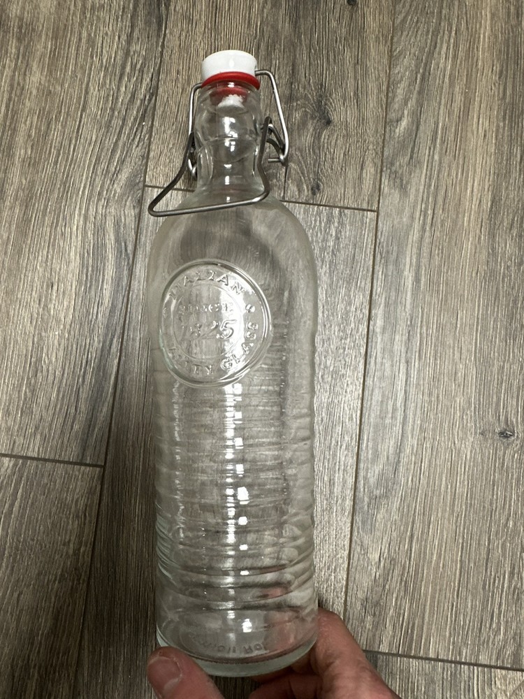 Bormioli Rocco 37 oz Glass Water Bottle with Airtight Metal Clamp Seal