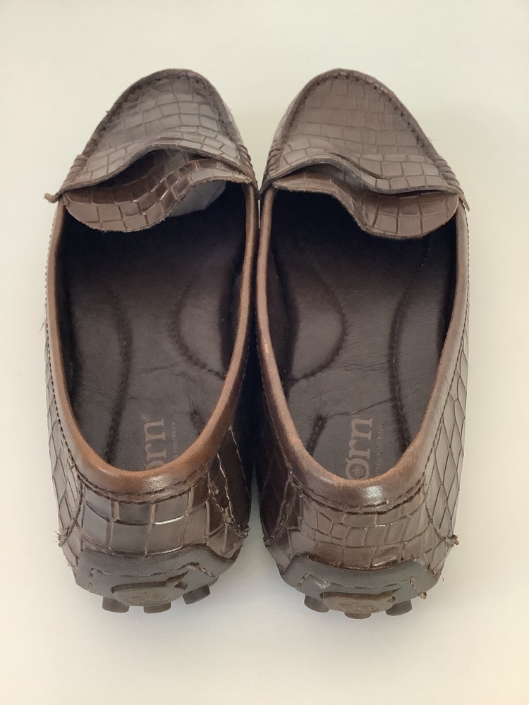 Department:WomenStyle:LoaferUS Shoe Size:6.5Brand:BørnPerformance/Activity:Driving, SchoolHeel Style:FlatInsole Material:LeatherType:FlatUpper Material:LeatherShoe Width:MTheme:CrocodileLining Material:LeatherColor:BrownClosure:Slip OnSeller Notes:“Gentle signs of wear on top of left shoe see last picture”Pattern:Animal PrintSeason:Fall, Spring, SummerVintage:NoOutsole Material:LeatherOccasion:Casual