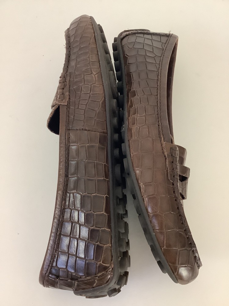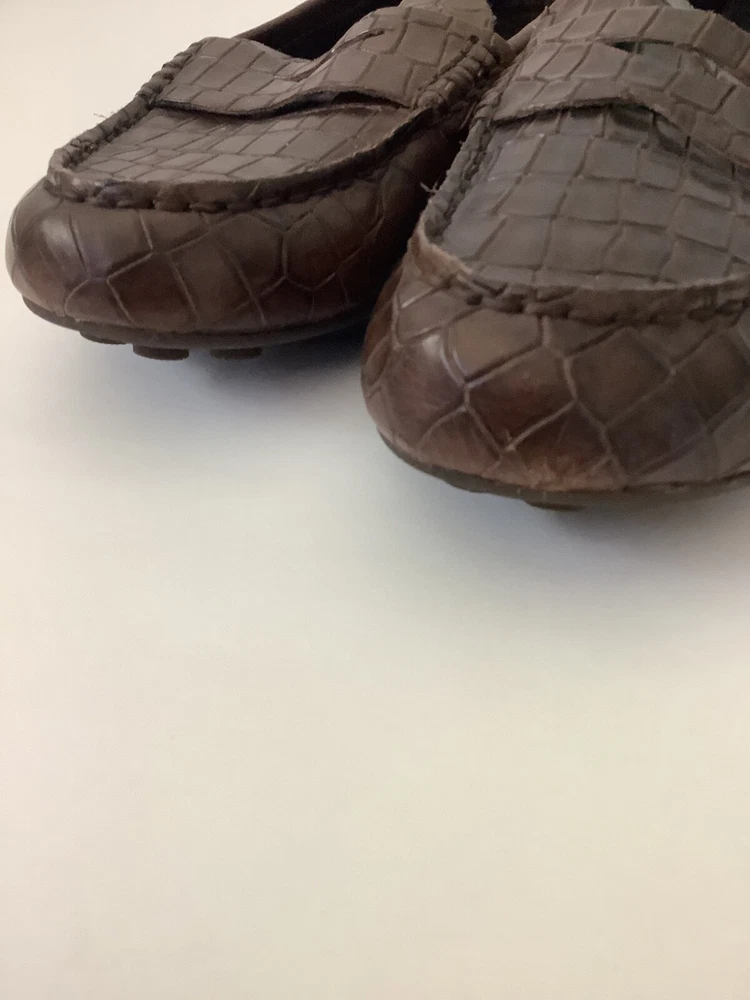 Born Leather Driving Shoes Crocodile Print Brown Loafers Women Size 6.5M Preowne