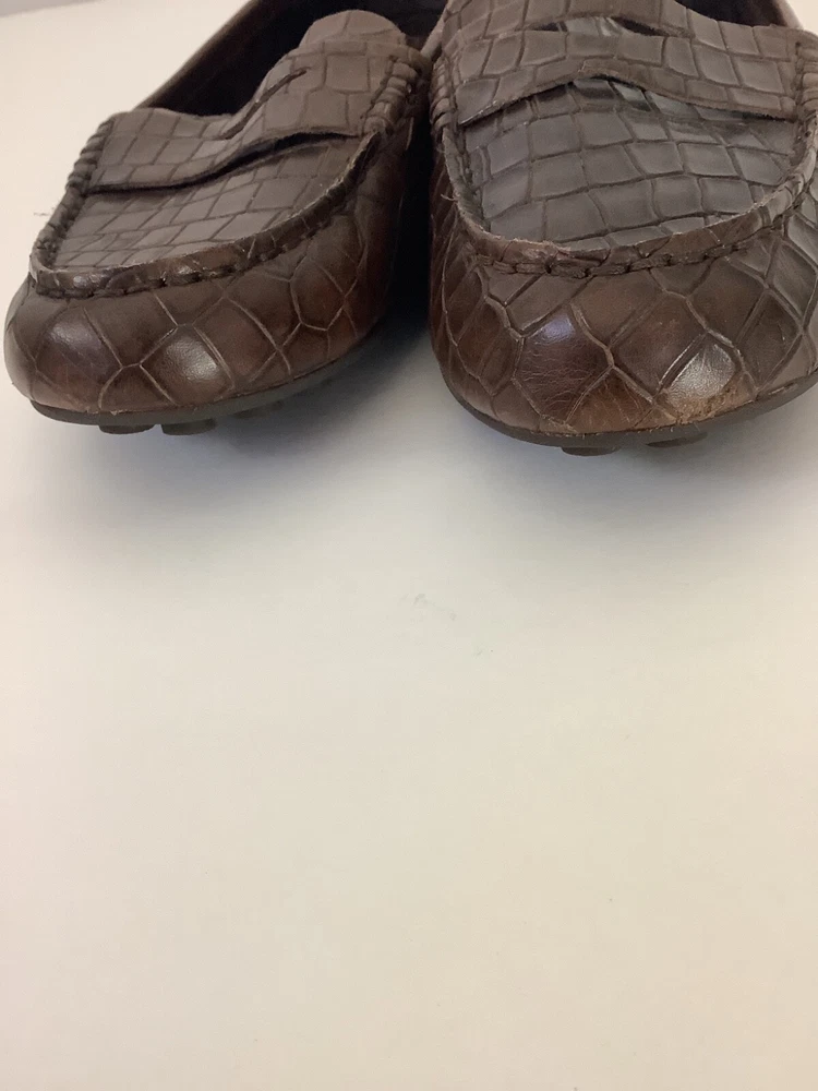 HomeBorn Leather Driving Shoes Crocodile Print Brown Loafers Women Size 6.5M Preowne