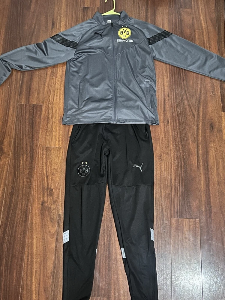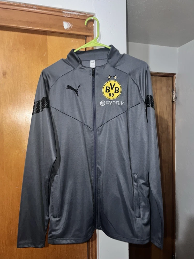 Represent your favorite soccer team with this Borussia Dortmund 22/22 Tracksuit. Made by PUMA, this officially licensed apparel is perfect for any fan looking to show their support for the team. The tracksuit features the team's iconic gray color and logo, making it a must-have for any true fan. This men's tracksuit is perfect for soccer fans who want to stay warm and comfortable while watching their favorite team play. With its high-quality materials and stylish design, this tracksuit is sure to make you stand out in the crowd. Whether you're cheering on Borussia Dortmund at the stadium or just playing a casual game of soccer with friends, this tracksuit is the perfect choice.