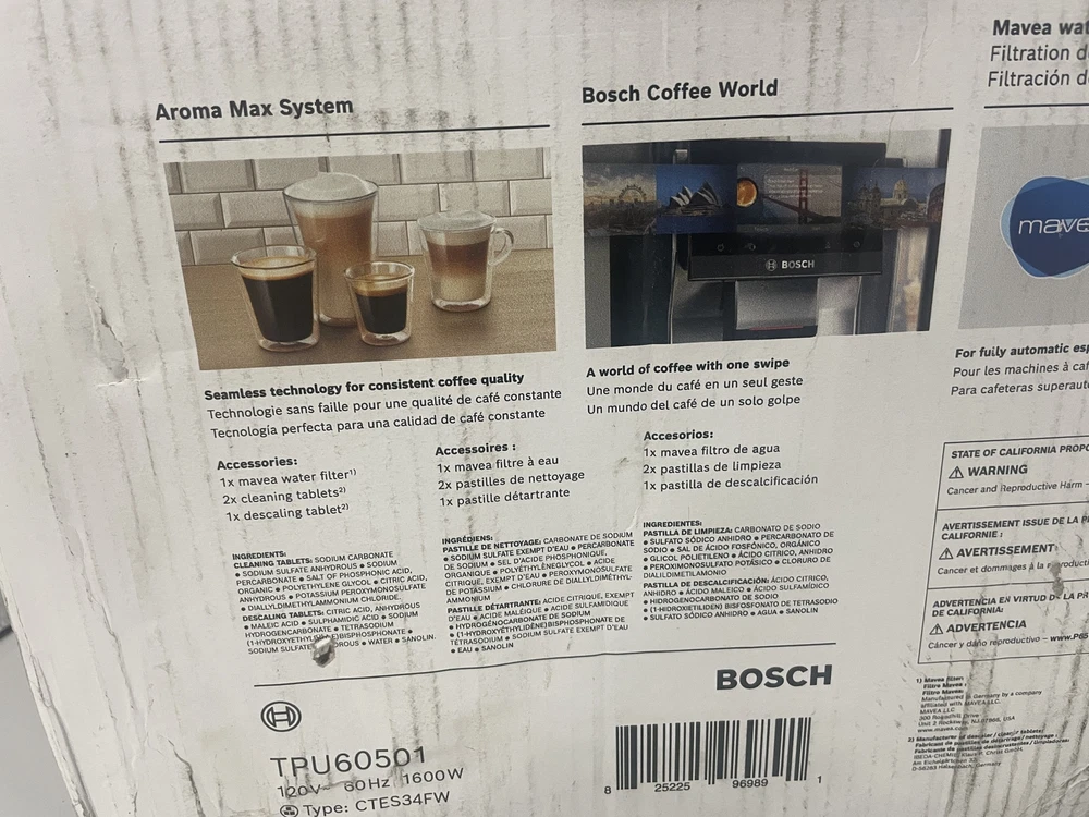 ebay template Bosch 800 Series VeroCafe Automatic Espresso Machine w/ Home Connect TPU60501 Item Specifics: Model: TPU60501 Size: 2.4 L water tank Color: Metallic Silver UPC: 825225969891 Retail Price: $1,799.00 Condition: New with original distressed packaging. Distressed box exterior; inside box is still factory packed with no damaged. See photos Cargo Largo is not sponsored by or affiliated with the brands associated with the products being sold. All dimensions are approximate This item cannot be shipped out of the United States! Cargo Largo is not sponsored by or affiliated with the brand associated with the product being sold. Contact Seller If you have any questions, please use the “Contact Seller” link in the upper right section of the listing. Our business hours are 8:00 AM - 3:30 PM Monday-Friday (Central Time). Sales completed and emails received after normal business hours may be handled the next business day. Shipping Policy We ONLY ship within the lower 48 United States. We ONLY ship to the address selected by the customer at checkout. Buyers MAY NOT arrange their own shipping. ALL orders with total value of $250 or more WILL require a delivery signature. For this item, we DO NOT offer combined shipping with other listings. Location We offer local pickup for all our eBay auction items. To request local pickup for items you have won, please send us a message asking for “pick up” and we will send you an eBay invoice with your total. All local pickup orders MUST be paid within 4 DAYS after the listing ended per eBay policy. The payment total will include Missouri sales tax AND a $4 handling fee per item. Non-Missouri residents will need to pay IN PERSON (credit/debit cards only) within 4 days after the listing ended. Buy It Now items are NOT eligible for local pickup. Paid items must be picked up within 10 DAYS after the end of the listing. If not, your order will be cancelled and refunded. Social distancing policies WILL be enforced during pickups. Local Pickup Location 7460 Stadium Drive Kansas City, MO 64129 Pickup Hours SUNDAY MONDAY TUESDAY WEDNESDAY THURSDAY FRIDAY SATURDAY CLOSED 11am-6pm 7:30am-4pm CLOSED 7:30am-4pm 7:30am-6pm CLOSED Return Policy We are not an authorized dealer of this product and any warranty included with the product may not be honored by the manufacturer. If you believe that the item purchased from us does not match the item description, or if your item was damaged during transit, please contact us to discuss return and refund options. In order to initiate the refund process, buyer must contact us within 30 Days of receipt of item. All returns will require a return authorization. Please note that we will only pay return shipping if our listing does not accurately reflect the specifications or condition of the item received. If you wish to return an item for any other reason, we will accept a return on MOST items, provided that the item is returned to us in the same condition and within 30 Days. This applies to both the item and retail packaging. Buyer will be responsible for both original and return shipping charges Seller will initiate this transaction and refund the buyer once the item has been received AND agreed to the mutual cancellation. We DO NOT accept any returns on swimsuits, undergarments, stockings, lingerie, or any item marked AS IS for any reason other than a grievous error in the listing. Please bid accordingly on all items listed AS IS. Payments Cargo Largo requires payment within four (4) days. (Please note that this is real-time, beginning when the auction ends.) If payment has still not been received by the fourth (4th) day after the end of the auction, Cargo Largo will relist the item. Most states require the collection of SALES TAX on online sales by remote sellers. We will abide by all local, state and federal tax codes and buyer should check their state and locality for tax liability. Residents of Missouri and all buyers who pick their item(s) up locally are required to pay Missouri sales tax on all items. Sell Smarter with Kyozou. Inventory and Ecommerce Management