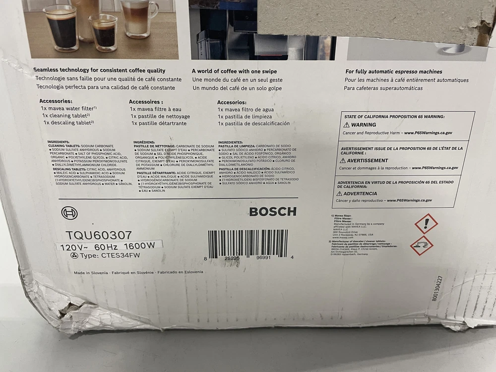 ebay template Bosch 800 Series VeroCafe Fully Automatic Espresso Machine In Silver TQU60307 Item Specifics: Model: TQU60703 Size: 81 oz water tank Color: Stainless Steel UPC: 825225969914 Retail Price: $1999.00 Condition: New/opened -- distressed original packaging; packaging show general wear from previous transit & warehouse storage; opened for pictures Features: Build-in grinder Adjustable dispenser Removable water tank 36 beverage option 4 coffee strengths Coffee pot function 30 Favorites Aroma Select 19.0 pressure bar 5" touch screen Integrated milk system with container Beverage customization Cup warmer Auto clean Home connect - brew from your smart phone, tablet or smartwatch Brew with Alexa or Google Home Cargo Largo is not sponsored by or affiliated with the brands associated with the products being sold. All dimensions are approximate This item cannot be shipped out of the United States! Cargo Largo is not sponsored by or affiliated with the brand associated with the product being sold. Contact Seller If you have any questions, please use the “Contact Seller” link in the upper right section of the listing. Our business hours are 8:00 AM - 3:30 PM Monday-Friday (Central Time). Sales completed and emails received after normal business hours may be handled the next business day. Shipping Policy We ONLY ship within the lower 48 United States. We ONLY ship to the address selected by the customer at checkout. Buyers MAY NOT arrange their own shipping. ALL orders with total value of $250 or more WILL require a delivery signature. For this item, we DO NOT offer combined shipping with other listings. Location We offer local pickup for all our eBay auction items. To request local pickup for items you have won, please send us a message asking for “pick up” and we will send you an eBay invoice with your total. All local pickup orders MUST be paid within 4 DAYS after the listing ended per eBay policy. The payment total will include Missouri sales tax AND a $4 handling fee per item. Non-Missouri residents will need to pay IN PERSON (credit/debit cards only) within 4 days after the listing ended. Buy It Now items are NOT eligible for local pickup. Paid items must be picked up within 10 DAYS after the end of the listing. If not, your order will be cancelled and refunded. Social distancing policies WILL be enforced during pickups. Local Pickup Location 7460 Stadium Drive Kansas City, MO 64129 Pickup Hours SUNDAY MONDAY TUESDAY WEDNESDAY THURSDAY FRIDAY SATURDAY CLOSED 11am-6pm 7:30am-4pm CLOSED 7:30am-4pm 7:30am-6pm CLOSED Return Policy We are not an authorized dealer of this product and any warranty included with the product may not be honored by the manufacturer. If you believe that the item purchased from us does not match the item description, or if your item was damaged during transit, please contact us to discuss return and refund options. In order to initiate the refund process, buyer must contact us within 30 Days of receipt of item. All returns will require a return authorization. Please note that we will only pay return shipping if our listing does not accurately reflect the specifications or condition of the item received. If you wish to return an item for any other reason, we will accept a return on MOST items, provided that the item is returned to us in the same condition and within 30 Days. This applies to both the item and retail packaging. Buyer will be responsible for both original and return shipping charges Seller will initiate this transaction and refund the buyer once the item has been received AND agreed to the mutual cancellation. We DO NOT accept any returns on swimsuits, undergarments, stockings, lingerie, or any item marked AS IS for any reason other than a grievous error in the listing. Please bid accordingly on all items listed AS IS. Payments Cargo Largo requires payment within four (4) days. (Please note that this is real-time, beginning when the auction ends.) If payment has still not been received by the fourth (4th) day after the end of the auction, Cargo Largo will relist the item. Most states require the collection of SALES TAX on online sales by remote sellers. We will abide by all local, state and federal tax codes and buyer should check their state and locality for tax liability. Residents of Missouri and all buyers who pick their item(s) up locally are required to pay Missouri sales tax on all items. Sell Smarter with Kyozou. Inventory and Ecommerce Management