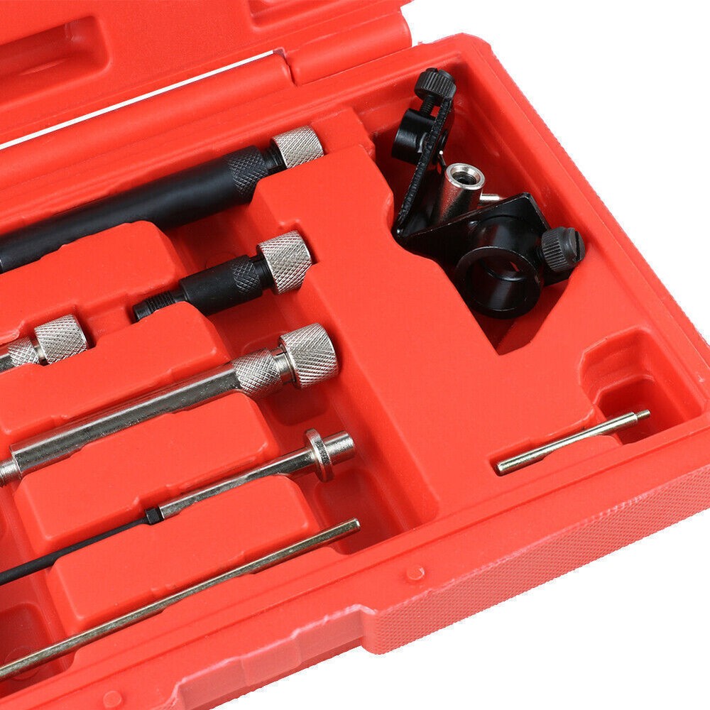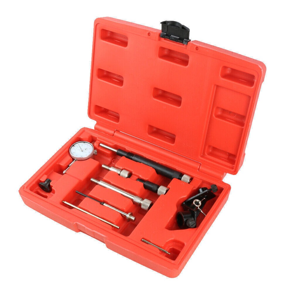 Product Description Diesel Fuel Injection Pump Timing Indicator Tool For Bosch EP/VE Rotary Denso Diesel Fuel Pump Timing Tool Kit Set For Alfa Romeo, Audi, BMW, Daihatsu, Fiat, Ford, Isuzu, Iveco, Lancia, Land Rover, Mazda, Mitsubishi, Nissan, Renault, Rover and for Volkswagen This tool kit is required to set up Bosch EP/VE Rotary, Niki, Nippon, Denso, CAV Rotodiesel injection pumps (top entry port) and the PSA XUD range of engines. Additional Information Precision measuring instrument. Designed for resetting the timing position on diesel engines. Suitable for diesel engines with Bosch, EP/VE Rotary, Niki, Nippon Denso, CAV Rotodiesel, Top entry fuel pump. A) Piston Height Adaptor M14 / Extension B) M10 Adaptor - Short C) M8 Adaptor Long D) M8 Adaptor Short E) Thread Convertor M8-M12 F) Extension Long – 99mm G) Extension – Short 40.8MM H) Mounting Bracket Assembly I) Probe J) Dial Test Indicator 41 x 8 x 0.1mm Packaging Details Unit Type: piece Package Weight: 0.98kg (2.16lb.)