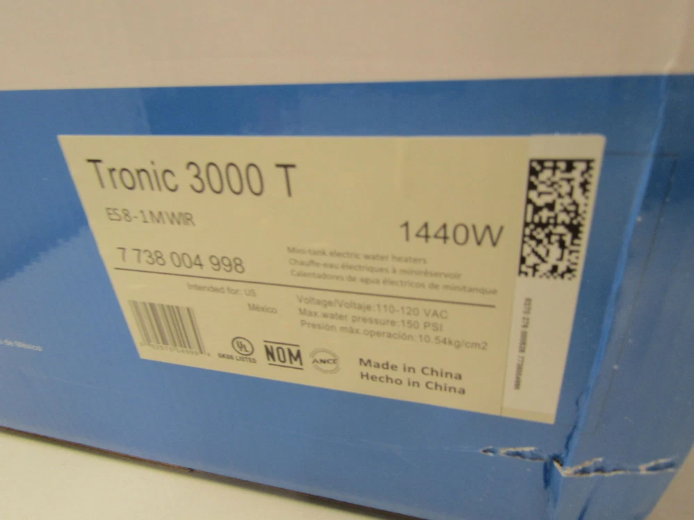ebay template Bosch ES8-1MWIR Tronic 3000 T 7 Gal. Electric Point of Use Water Heater Item Specifics: Model: ES8-1MWIR UPC: 052575049984 Retail: $212 Color: White Condition: Open box--all included items shown in photos and untested unless otherwise noted; Items show general wear from previous transit & warehouse storage. Distressed packaging; labels removed from box exterior Features : 7 gallon tank 94% thermal efficiency Glass lined tank Installs independently Has a temperature and pressure relief valve Cargo Largo is not sponsored by or affiliated with the brands associated with the products being sold. Packaging Condition: Distressed original packaging This item cannot be shipped out of the United States! Cargo Largo is not sponsored by or affiliated with the brand associated with the product being sold. Contact Seller If you have any questions, please use the “Contact Seller” link in the upper right section of the listing. Our business hours are 8:00 AM - 3:30 PM Monday-Friday (Central Time). Sales completed and emails received after normal business hours may be handled the next business day. Shipping Policy We ONLY ship within the lower 48 United States. We ONLY ship to the address selected by the customer at checkout. Buyers MAY NOT arrange their own shipping. ALL orders with total value of $250 or more WILL require a delivery signature. For this item, we DO NOT offer combined shipping with other listings. Location We offer local pickup for all our eBay auction items. To request local pickup for items you have won, please send us a message asking for “pick up” and we will send you an eBay invoice with your total. All local pickup orders MUST be paid within 8 DAYS after the listing ended per eBay policy. The payment total will include Missouri sales tax AND a $4 handling fee per item. Non-Missouri residents will need to pay IN PERSON (credit/debit cards only) within 4 days after the listing ended. Buy It Now items are NOT eligible for local pickup. Paid items must be picked up within 10 DAYS after the end of the listing. If not, your order will be cancelled and refunded. Social distancing policies WILL be enforced during pickups. Local Pickup Location 7460 Stadium Drive Kansas City, MO 64129 Pickup Hours SUNDAY MONDAY TUESDAY WEDNESDAY THURSDAY FRIDAY SATURDAY CLOSED 11am-6pm 7:30am-4pm CLOSED 7:30am-4pm 7:30am-6pm CLOSED Return Policy We are not an authorized dealer of this product and any warranty included with the product may not be honored by the manufacturer. If you believe that the item purchased from us does not match the item description, or if your item was damaged during transit, please contact us to discuss return and refund options. In order to initiate the refund process, buyer must contact us within 30 Days of receipt of item. All returns will require a return authorization. Please note that we will only pay return shipping if our listing does not accurately reflect the specifications or condition of the item received. If you wish to return an item for any other reason, we will accept a return on MOST items, provided that the item is returned to us in the same condition and within 30 Days. This applies to both the item and retail packaging. Buyer will be responsible for both original and return shipping charges Seller will initiate this transaction and refund the buyer once the item has been received AND agreed to the mutual cancellation. We DO NOT accept any returns on swimsuits, undergarments, stockings, lingerie, or any item marked AS IS for any reason other than a grievous error in the listing. Please bid accordingly on all items listed AS IS. Payments Cargo Largo requires payment within four (4) days. (Please note that this is real-time, beginning when the auction ends.) If payment has still not been received by the fourth (4th) day after the end of the auction, Cargo Largo will relist the item. Most states require the collection of SALES TAX on online sales by remote sellers. We will abide by all local, state and federal tax codes and buyer should check their state and locality for tax liability. Residents of Missouri and all buyers who pick their item(s) up locally are required to pay Missouri sales tax on all items. Sell Smarter with Kyozou. Inventory and Ecommerce Management