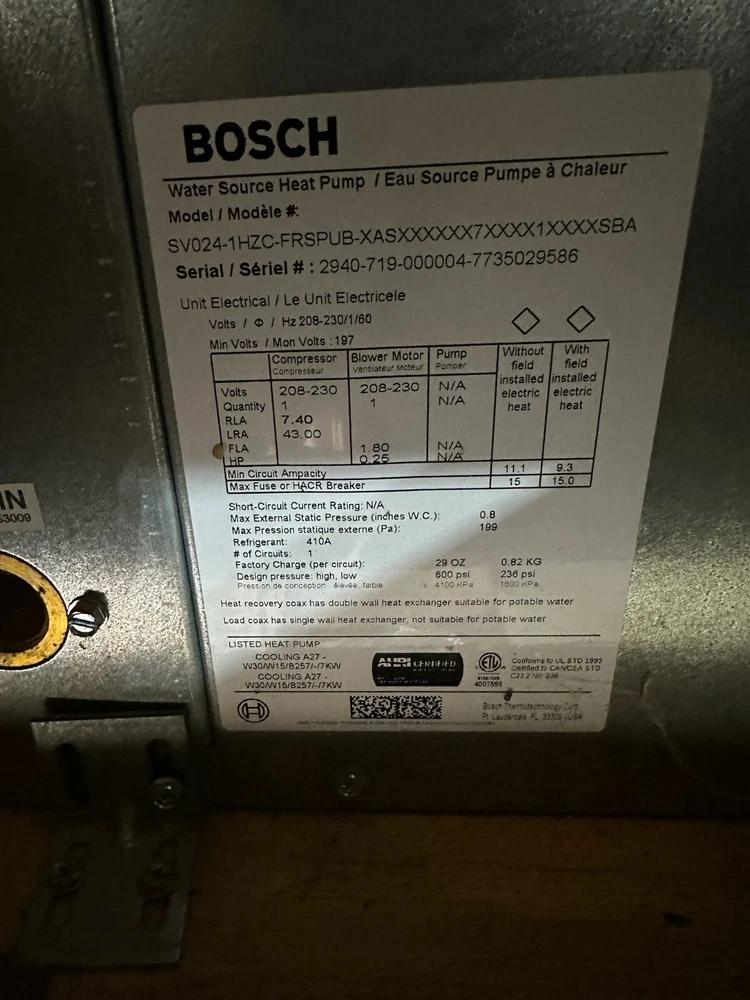Bosch Heat Pump SV024-1HZC-FRSPUB 2 Ton Unit