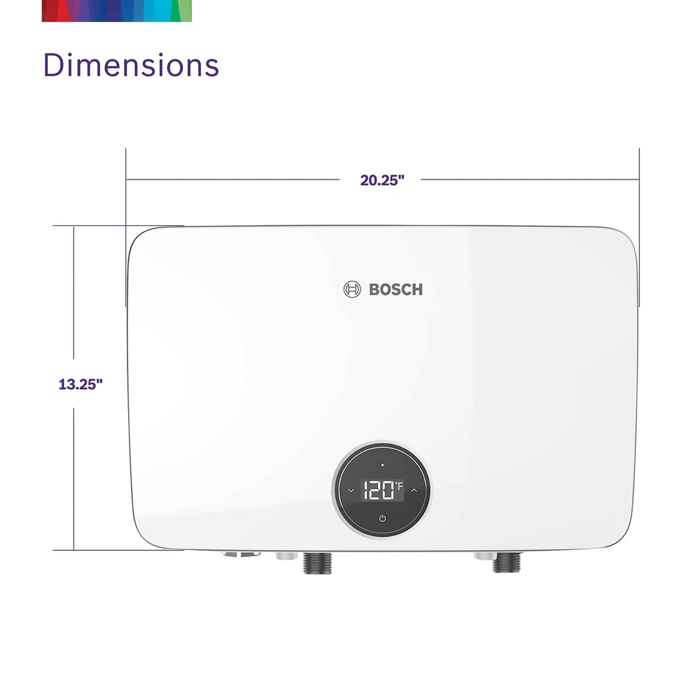 Technical Details Brand Bosch Thermotechnology Product Dimensions 8.5"W x 13"H Special Feature Lightweight Color White Wattage 27000 watts Maximum Flow Rate 0.14 Cubic Meters Per Minute Efficiency 95% thermal efficiency Mounting Type Wall Is Electric Yes Manufacturer Bosch Thermotechnology Item Depth [SMALL] UPC 052575112992 Part Number 7738007421 Item Weight 17.26 pounds Country of Origin China Item model number 7738007421 Item Package Quantity 1 Special Features Lightweight Included Components Electric Tankless Water Heater Batteries Required? No COMPACT AND LIGHTWEIGHT: Effortlessly fits under sinks GREAT FOR LOW-FLOW FAUCETS: With as low as a 0.55 GPM activation flow rate, it's perfect for commercial low-flow faucets in shopping malls, airports, stadiums, offices, and more EFFICIENT AND DURABLE: 96% thermal efficiency with no standby heat loss to save you time, water, and money, and comes incased in a durable white plastic housing that blends in with existing décor As low as .55 GPM activation flow rate 5 year limited warranty 3.5 KW TANKLESS WATER HEATER: Designed specifically for point of use applications to provide an endless supply of instantaneous hot water for one or more commercial or residential sinks Shipping We offer FREE shipping on all orders! We ship within Three business days of payment, usually sooner. We use a selection of shipping services such as UPS, FedEx, USPS etc. We only ship to the lower 48 states, no APO/FPO addresses or PO Boxes allowed. Local pickups and combined shipping options are not provided at this time. Return You can return a product for up to 30 days from the date you purchased it. Any product you return must be in the same condition you received it and in the original packaging. Please keep the receipt. Payment We accept payment by any of the following methods: PayPal Please pay as soon as possible after winning an auction, as that will allow us to post your item to you sooner! Feedback Customer satisfaction is very important to us. If you have any problem with your order, please contact us and we will do our best to make you satisfied. Contact Us If you have any queries, please contact us via ebay. We usually respond within 24 hours on weekdays. Please visit our eBay store to check out other items for sale! Thank you for shopping at our store.