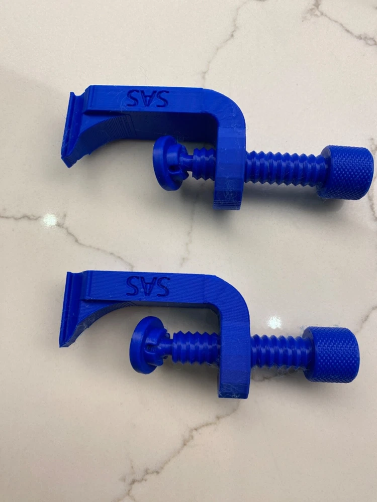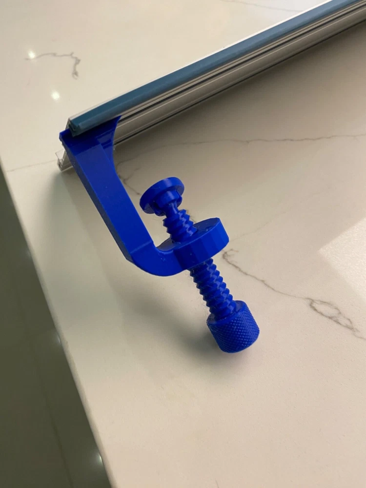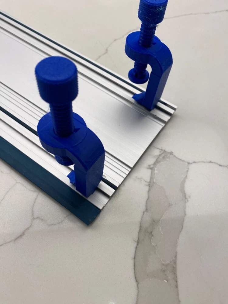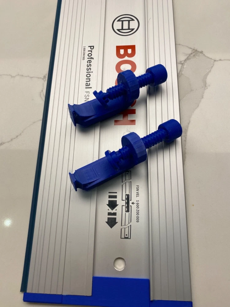 All In One Clamp Improve efficiency with this All In One Clamp to fit the BOSCH FSN Guide Rail, this is all you need! G- Style clamp to fit the Guide Track from Bosch - very easy to hold down material = perfect for worktops Excellent design and fit Cost effective alternative - its all there, right out of the box What is included: 2 (two) complete all in one G-Clamps This is a complete clamp, no additional stuff needed!! Please note: Made in the UK Protected design Guide rails not included Colour may vary (mostly blue) Material PLA/PETG