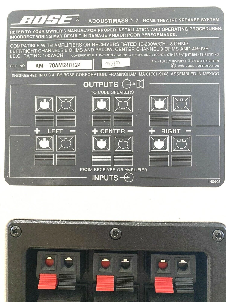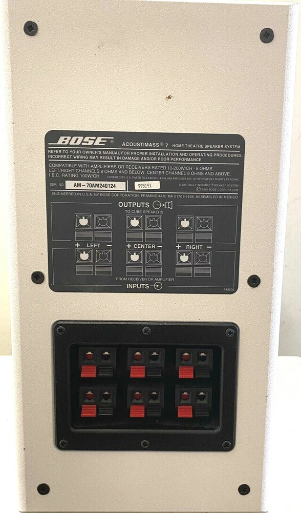 Bose Acoustimass 7 Home Theatre Speaker System+6 Speaker Wires PLEASE NOTE: • If you are unhappy with your order for any reason, please submit your return request through eBay and we will be happy to resolve any issues. We cannot issue a refund for shipped orders until a return request has been filed Thank you for your business and we look forward to servicing you as a repeat customer in the very near future! if you should have any questions or concerns about your item purchase, you may contact us via eBay Messages. Thanks for your business! Sincerely, Ann Makool