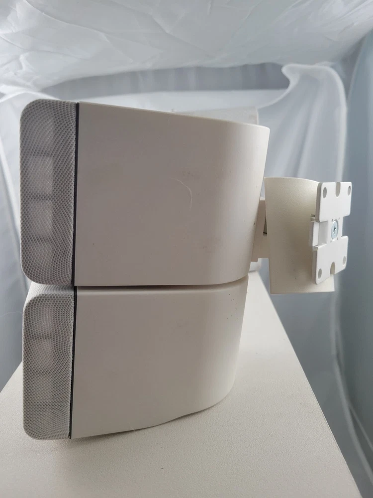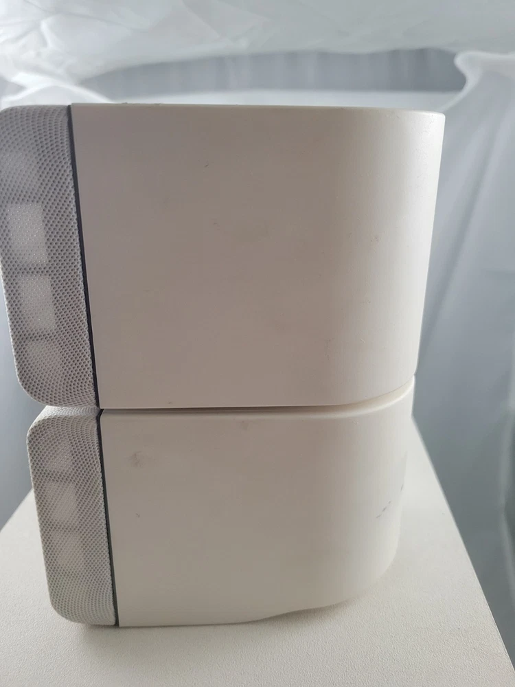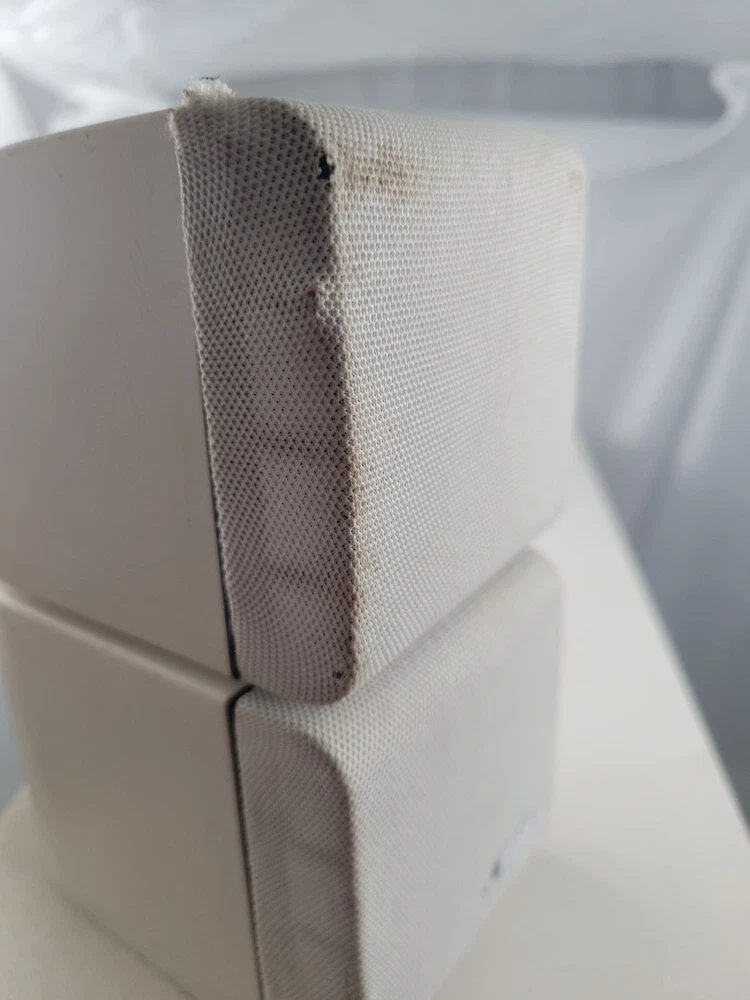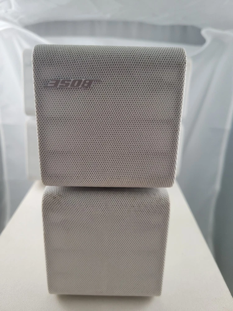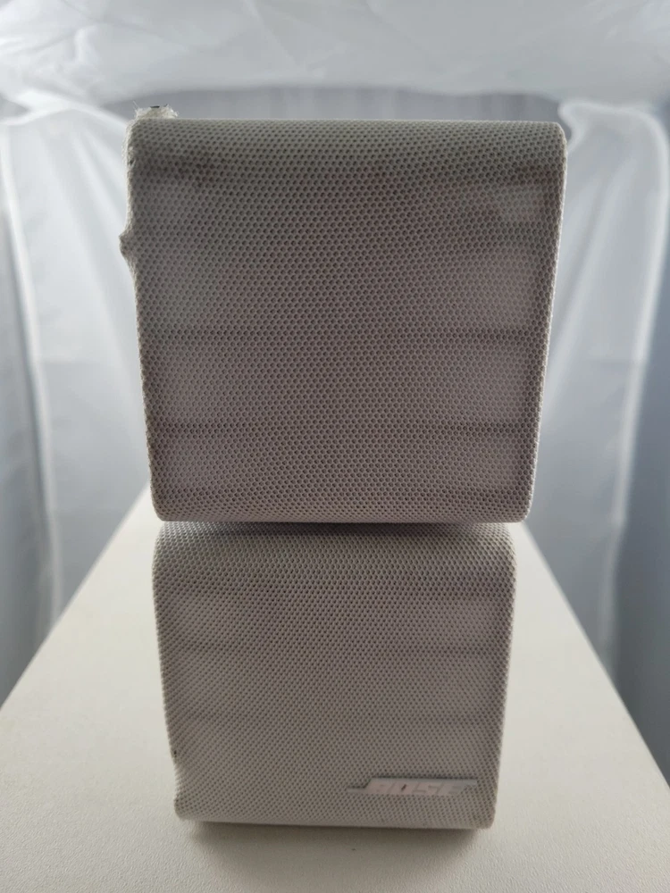 Bose Acoustimass 7 White Home Theatre Subwoofer Speaker Tested 3 Cubes VIDEO SEE VIDEO WORKS GREAT PLUS 3 CUBE SPEAKERS WIRES INCLUDED AND MANUAL IS ALSO INCLUDED ONE OF THE CUBES HAS SOME COSMETIC DAMAGE SEE PHOTOS BUT STILL WORKS