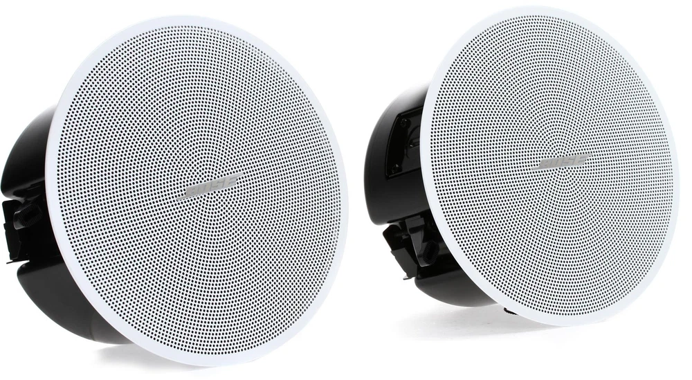 Top-flight Sound Quality and Appealing Aesthetics The Bose DesignMax DM2C-LP combines top-flight sound quality with appealing aesthetics. Tailor-made for background music, this 16-watt in-ceiling speaker contains a full-range 2.25-inch driver that meticulously reproduces the 85Hz to 19kHz frequency range — no DSP or EQ required. Beyond that, 180° conical coverage ensures a great listening experience for everyone in the room. Working with a confined space? No problem. The DM2C-LP boasts a low-profile backcan that fits anywhere, and its QuickHold mounting arms ensure easy installation. The DesignMax DM2C-LP works with a wide range of amplifiers, and its 16-ohm design allows for four units to be installed on a single low-impedance line. Plus, combined 70-volt/100-volt and low-impedance operation supply super-versatile operation. At Sweetwater, we recommend the Bose DesignMax DM2C-LP to anyone who’s searching for an in-ceiling loudspeaker with outstanding sound and an eye-grabbing look.Bose DesignMax DM2C-LP In-ceiling Loudspeaker Features: 16W, 16-ohm in-ceiling Sweetwater is an Authorized Bose Professional Dealer Genuine Open Box Item Sweetwater's 2-year warranty Bose Professional DesignMax DM2C-LP In-ceiling Loudspeaker - White 16-watt, 16-ohm In-ceiling Loudspeaker with 2.25" Full-range Driver, 180-degree Coverage, and 70-volt/100-volt Transformer Taps - White (Pair) Top-flight Sound Quality and Appealing Aesthetics The Bose DesignMax DM2C-LP combines top-flight sound quality with appealing aesthetics. Tailor-made for background music, this 16-watt in-ceiling speaker contains a full-range 2.25-inch driver that meticulously reproduces the 85Hz to 19kHz frequency range — no DSP or EQ required. Beyond that, 180° conical coverage ensures a great listening experience for everyone in the room. Working with a confined space? No problem. The DM2C-LP boasts a low-profile backcan that fits anywhere, and its QuickHold mounting arms ensure easy installation. The DesignMax DM2C-LP works with a wide range of amplifiers, and its 16-ohm design allows for four units to be installed on a single low-impedance line. Plus, combined 70-volt/100-volt and low-impedance operation supply super-versatile operation. At Sweetwater, we recommend the Bose DesignMax DM2C-LP to anyone who’s searching for an in-ceiling loudspeaker with outstanding sound and an eye-grabbing look. Bose DesignMax DM2C-LP In-ceiling Loudspeaker Features: 16W, 16-ohm in-ceiling speaker Combines top-flight sound quality with appealing aesthetics Tailor-made for background music Full-range 2.25” driver meticulously reproduces 85Hz-19kHz without DSP or EQ 180° conical coverage ensures a great listening experience for everyone in the room Low-profile backcan fits anywhere QuickHold mounting arms ensure easy installation Works with a wide range of amplifiers 16-ohm design allows for four units to be installed on a single low-impedance line Combined 70V/100V and low-impedance operation for added versatility Specification Detail Powered No Power Configuration Full-range Quantity Pair LF Driver Size 2.25" Power Rating 20W Continuous, 80W Peak Total Power 16W 70V/100V Output 70V/100V: 9W, 4.5W, 2.3W, 1.2W (70V only) Impedance 16 ohms Inputs Euroblock 6-pin Frequency Range 85Hz-19kHz (-10dB) Maximum Peak SPL 103dB SPL Horizontal Coverage Angle 180° (conical) Application Indoor Mounting Options In-ceiling Width 7.8" Depth 4.3" Weight 3.6 lbs. RETURN INFORMATION We want you to be completely happy with your purchase from Sweetwater. If you are not satisfied with your product, you may return it for a refund of the purchase price within 30 days. If your purchase was eligible for Free Shipping, the shipping cost will be deducted from your credit or refund. Returns must be in the complete and original packaging with all accessories and complete documentation (Owner's Manual, warranty card, quick start guides, etc.), show no signs of wear or use, and include a Return Authorization number or be subject to a restocking fee.