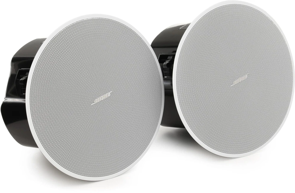 Top-flight Sound Quality and Appealing Aesthetics The Bose DesignMax DM5C combines top-flight sound quality with appealing aesthetics. This 60-watt in-ceiling speaker contains a 5.25-inch woofer and 1-inch tweeter that reproduce every nuance of the 65Hz to 20kHz frequency range — no DSP or EQ required. Beyond that, Bose’s acclaimed Dispersion Alignment system ensures a consistent listening experience for everyone in the room. Worried about installation? Don’t be — the DM5C’s QuickHold mounting arms make it fast and easy. At Sweetwater, we recommend the Bose DesignMax DM5C to anyone who’s searching for an in-ceiling loudspeaker with outstanding sound and an eye-grabbing look.Bose DesignMax DM5C In-ceiling Loudspeaker Features: 60-watt, 8-ohm 2-way in-ceiling speaker Combines top-flight sound quality with appealing aesthetics 5.25-inch woofer and 1-inch tweeter reproduce every nuance from 65Hz–20kHz without DSP or EQ Dispersion Alignment system ensures a consistent listening experience for everyone in the room QuickHold mounting arms ensure easy Sweetwater is an Authorized Bose Professional Dealer Genuine Open Box Item Sweetwater's 2-year warranty Bose Professional DesignMax DM5C 60W 5.25-inch In-ceiling Loudspeaker - White, 60-watt, 8-ohm 2-way In-ceiling Loudspeaker with 5.25-inch Woofer, 1-inch Tweeter, and Dispersion Alignment System - White (1-pair) Top-flight Sound Quality and Appealing Aesthetics The Bose DesignMax DM5C combines top-flight sound quality with appealing aesthetics. This 60-watt in-ceiling speaker contains a 5.25-inch woofer and 1-inch tweeter that reproduce every nuance of the 65Hz to 20kHz frequency range — no DSP or EQ required. Beyond that, Bose’s acclaimed Dispersion Alignment system ensures a consistent listening experience for everyone in the room. Worried about installation? Don’t be — the DM5C’s QuickHold mounting arms make it fast and easy. At Sweetwater, we recommend the Bose DesignMax DM5C to anyone who’s searching for an in-ceiling loudspeaker with outstanding sound and an eye-grabbing look. Bose DesignMax DM5C In-ceiling Loudspeaker Features: 60-watt, 8-ohm 2-way in-ceiling speaker Combines top-flight sound quality with appealing aesthetics 5.25-inch woofer and 1-inch tweeter reproduce every nuance from 65Hz–20kHz without DSP or EQ Dispersion Alignment system ensures a consistent listening experience for everyone in the room QuickHold mounting arms ensure easy installation Specification Detail Powered No Power Configuration 2-way Quantity Pair LF Driver Size 5.25" Woofer HF Driver Size 1" HF Neodymium Driver Total Power 60W, 70/100V operation 70V/100V Output 70V/100V: 50W, 25W, 12W, 6W, 3W (70V only) Impedance 8 ohms Inputs Euroblock 6-pin Frequency Range 65Hz-20kHz (-10dB) Crossover Frequency 24dB/octave @ 1800 Hz Maximum Peak SPL 103dB SPL Vertical Coverage Angle 160° (conical) Enclosure Material Engineered Plastic with Steel Grille Application Indoor Mounting Options In-ceiling Width 11.9" Depth 8.1" Weight 9.6 lbs. (each) RETURN INFORMATION We want you to be completely happy with your purchase from Sweetwater. If you are not satisfied with your product, you may return it for a refund of the purchase price within 30 days. If your purchase was eligible for Free Shipping, the shipping cost will be deducted from your credit or refund. Returns must be in the complete and original packaging with all accessories and complete documentation (Owner's Manual, warranty card, quick start guides, etc.), show no signs of wear or use, and include a Return Authorization number or be subject to a restocking fee.
