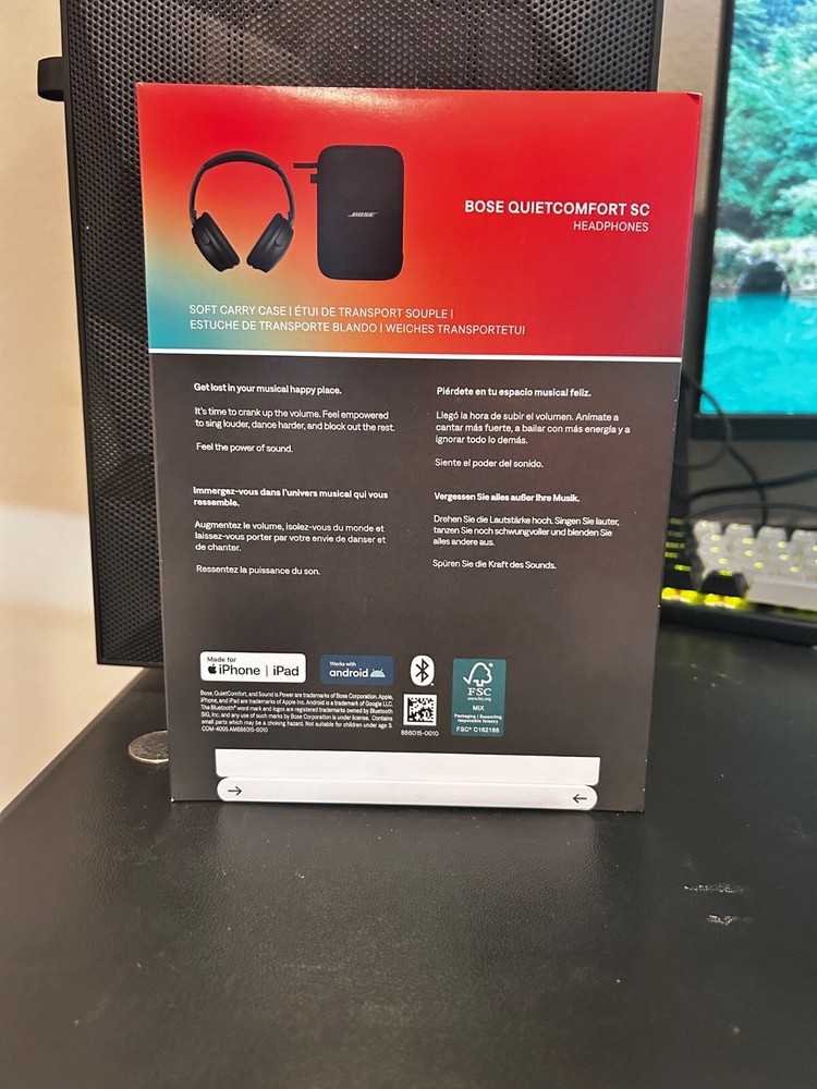 Experience enhanced audio quality with these Brand New unopened Bose Quiet Comfort SC Noise Cancelling Headphones. The over-ear design and Bluetooth connectivity make them perfect for on-the-go use. The sleek black color and noise-cancelling feature provide an immersive audio experience, free from any external distractions. The headphones are designed for use with wireless technology and have a weight of 8.4 oz.