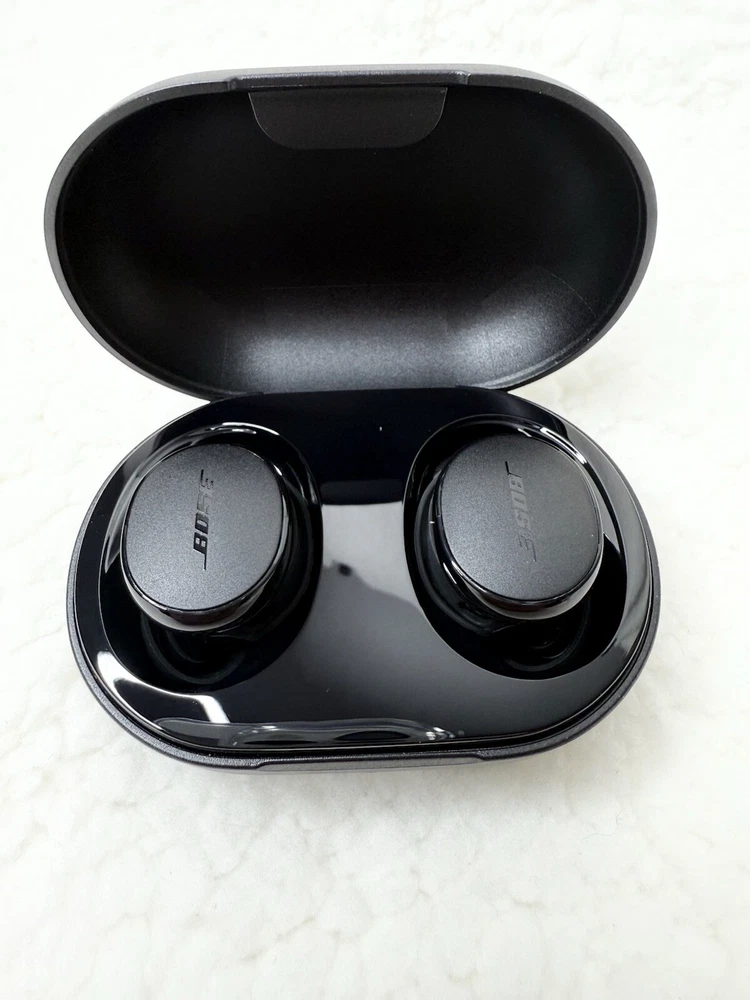 Authentic bose earbuds never use open box with usb cable. Limited stocks The Bose QuietComfort Earbuds are high-quality in-ear headphones designed for a comfortable and noise-canceling listening experience. They come in a sleek black color and feature a true wireless Bluetooth connectivity for hassle-free use. With a built-in microphone, these earbuds allow for convenient hands-free calling. The earbuds provide a double earpiece design for a secure fit and are backed by a manufacturer's warranty of 6 months. Overall, the Bose QuietComfort Earbuds offer a premium audio experience with wireless convenience and noise cancellation technology.