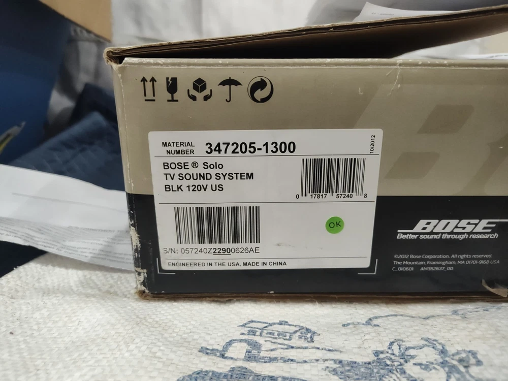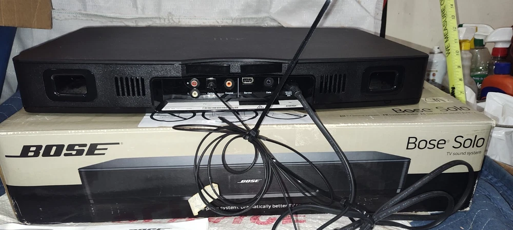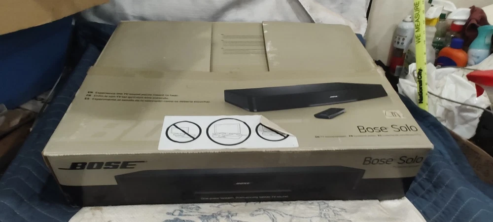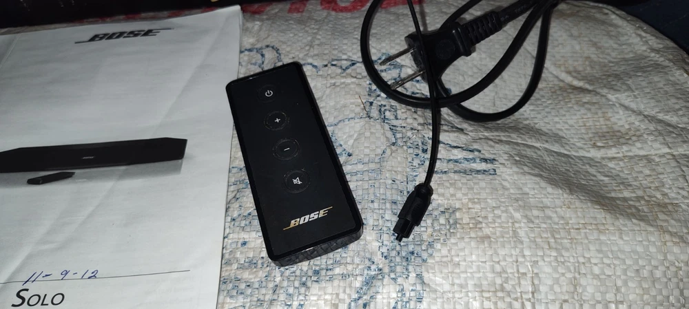 Elevate your home audio experience with the Bose Solo TV Sound System 410376, a sleek and powerful soundbar designed to enhance your television audio. Crafted with high-quality materials and boasting a rectangular shape, this black sound system seamlessly integrates with your entertainment setup. The Bose Solo 410376 delivers stunning sound with a 100W RMS power output and offers a variety of audio inputs including Digital Coaxial RCA, Stereo L/R RCA, Digital Optical TOSLINK, and a convenient 3.5mm input for easy connectivity. Enjoy the convenience of wireless streaming with Bluetooth connectivity or connect your devices using wired options for a reliable signal. The included remote control ensures easy operation of your audio settings. Whether you're enjoying a movie, sports, or music, this home audio system from Bose is tailored to meet the needs of any audio enthusiast looking for an exceptional sound experience. Material number 347205-1300 Bo Solo TV sound system black 120 volt us sounds like you said in the photos please view the photos please view the photos comes with remote control plus some instructions